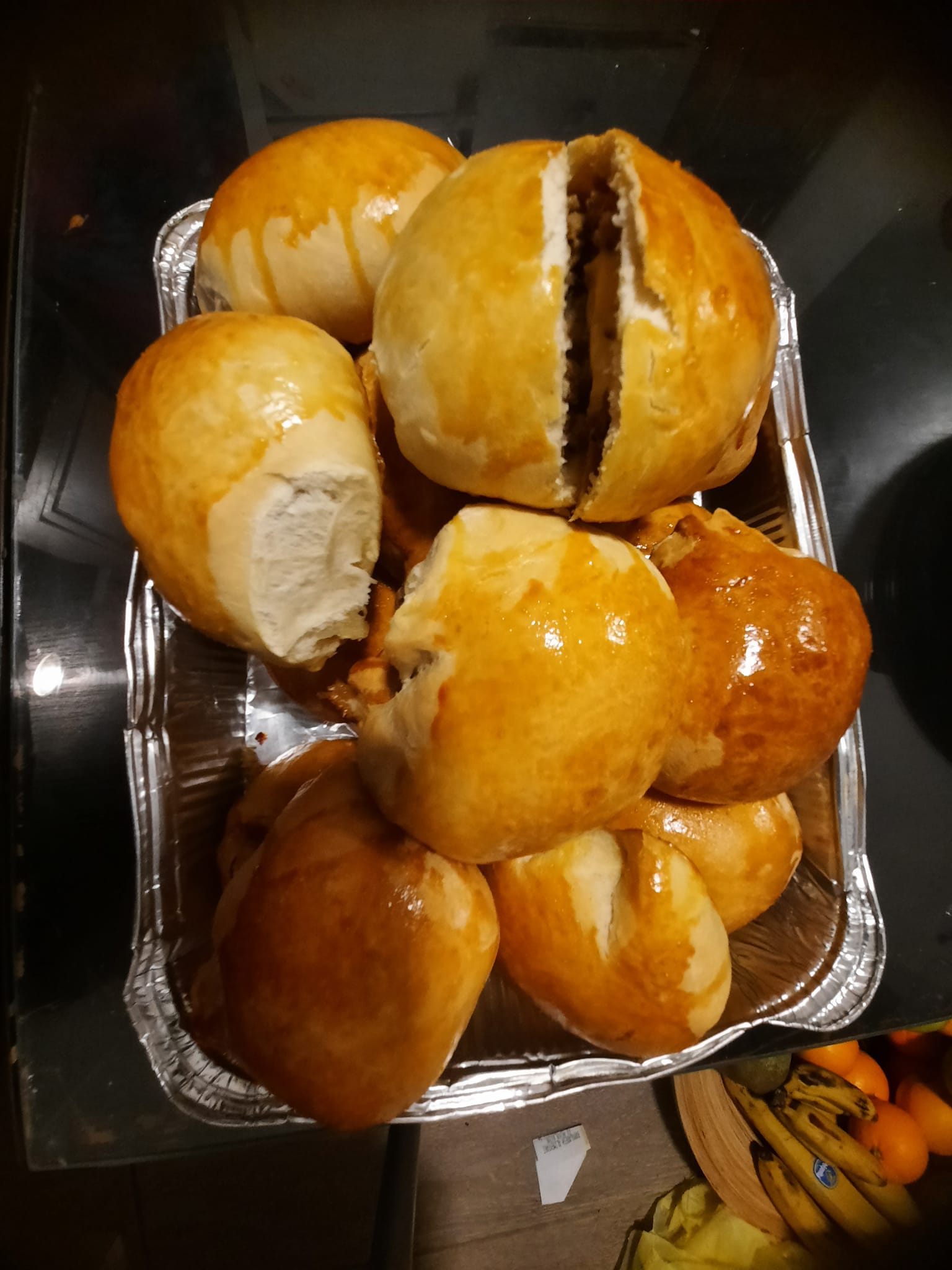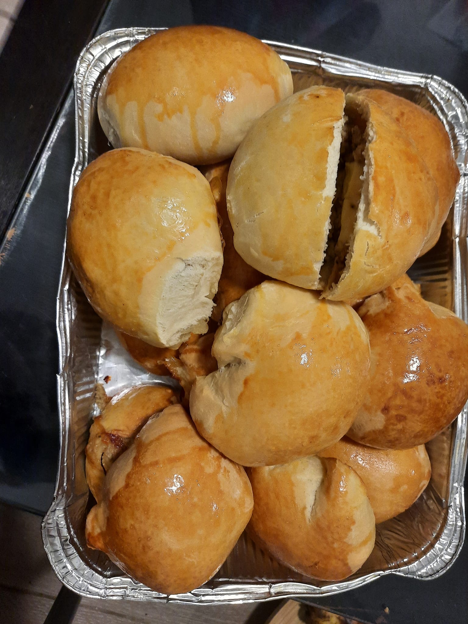- Prendre chaque boule et bien aplatir et ensuite ajouter la garniture et refermer en formant de nouveaux une boule bien ronde.