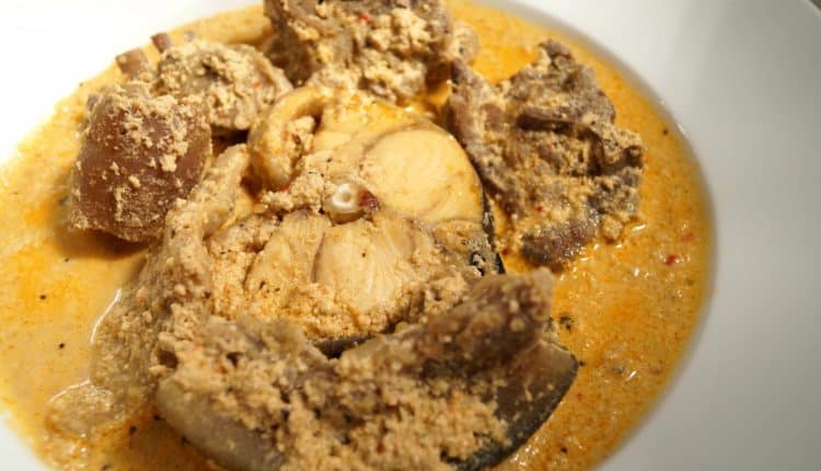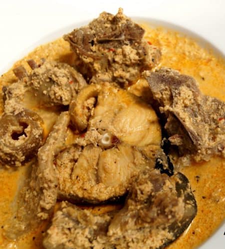 - Retirez du feu et servez avec de la banane plantain et de l’hirondelle eba ou de la banane plantain bouillie.