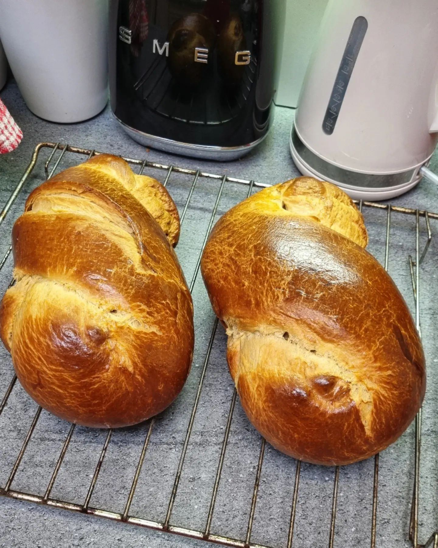 - Dorez à l’œuf entier, parsemez de sucre en grains (ou laissez-la nature) et faites cuire environ 30 minutes à 180°C (thermostat 6) ou 15 minutes pour les petites pièces. Voilà votre brioche du boulanger filante et moelleuse comme un nuage prête à être dégustée ! Certes très calorique mais excellente !