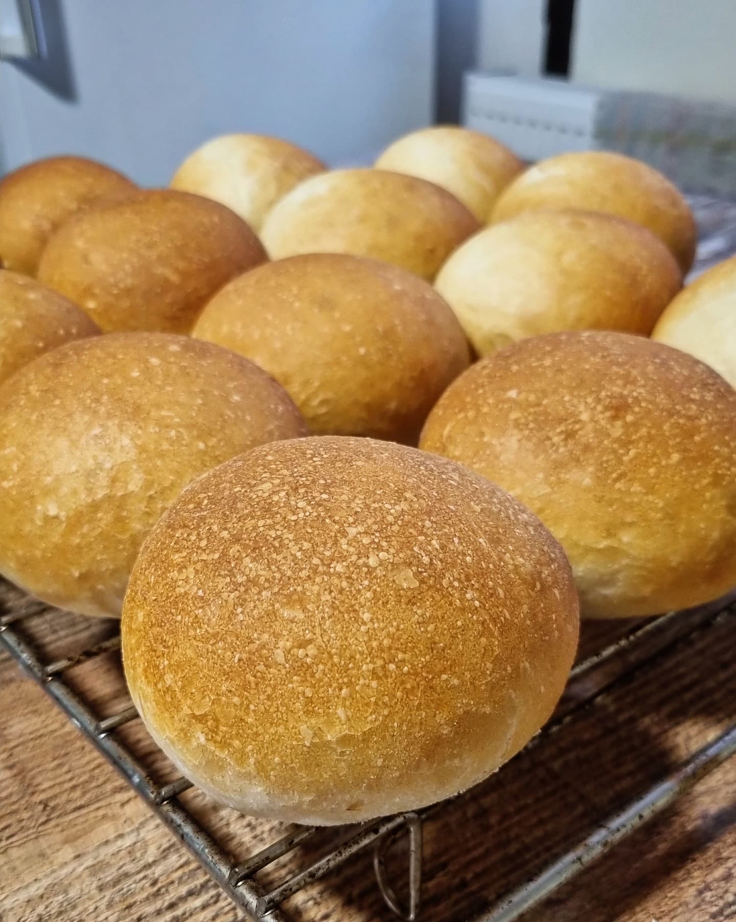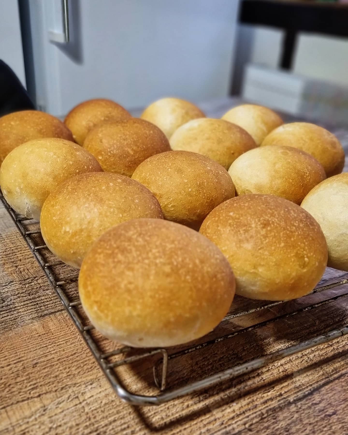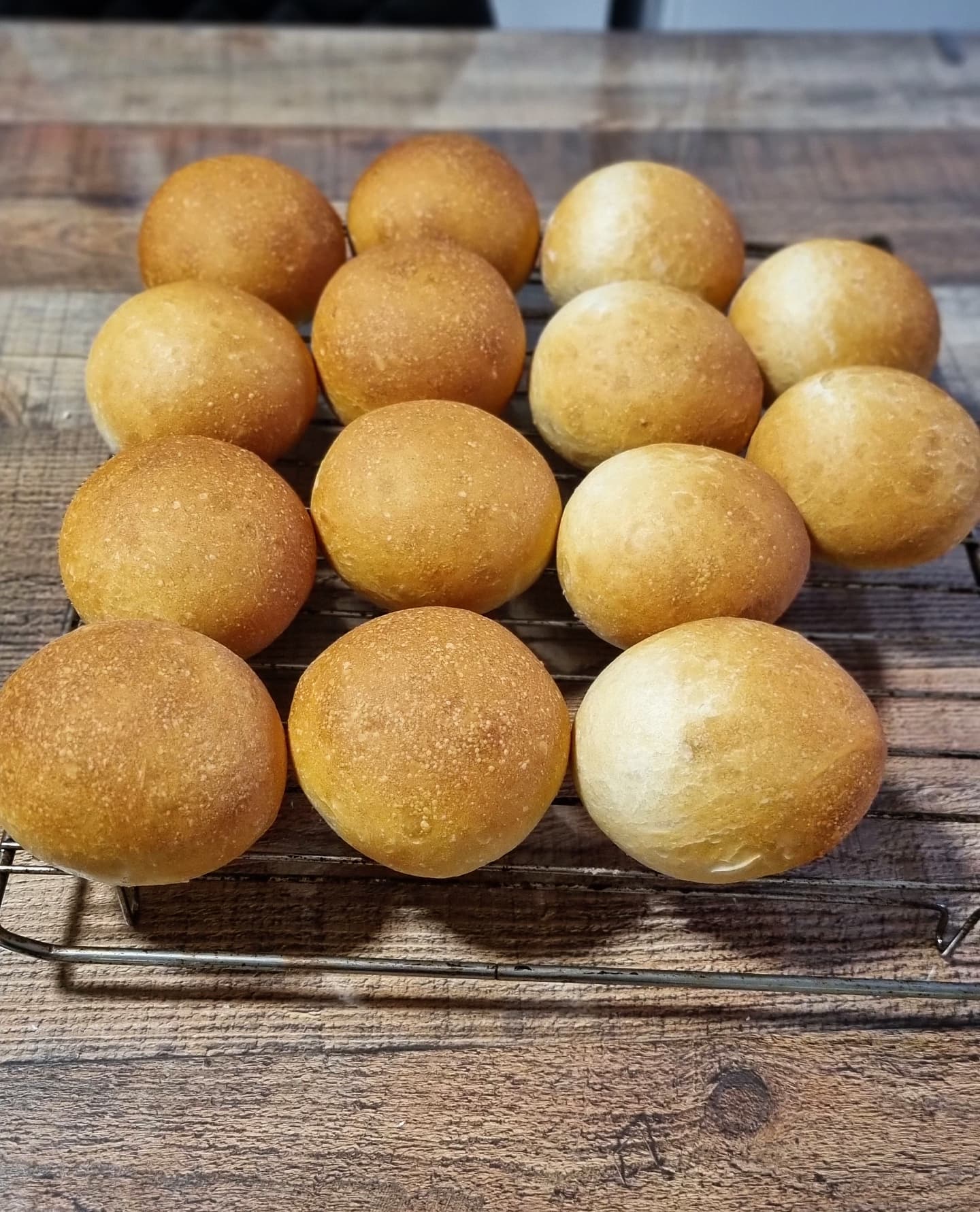 - Avant d’enfourner à nouveau, faite une entaille sur toute la longueur (enfin ..c’est un rond donc plutôt diamètre). Après 5 minutes, baissez la température du four à 220-210 en fonction de leur couleur et laissez encore cuire 10 à 13 minutes.