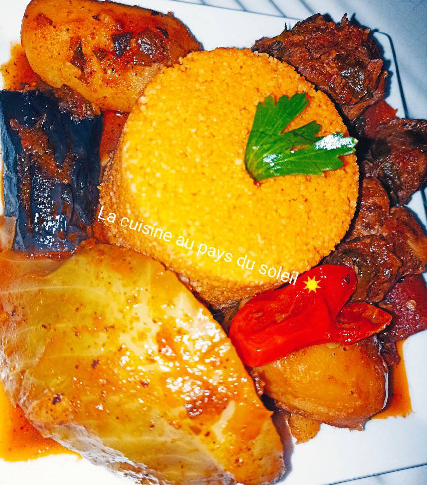 PS: le couscous je l’ai fait cuire à la vapeur une fois prêt, mettre dans un bol et ajouter la sauce de viande.