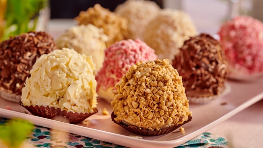 - Enrobez les merveilleux de chantilly puis roulez-les au choix dans les copeaux de chocolat noir ou blanc, dans le pralin ou les pralines.