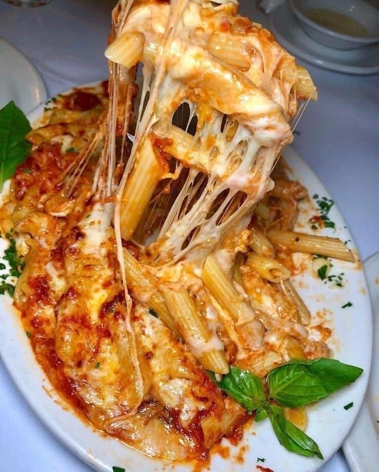 - Nous ajoutons la sauce aux pâtes et servons chaud, saupoudré avec un peu de basilic frais haché, origan, persil, etc.