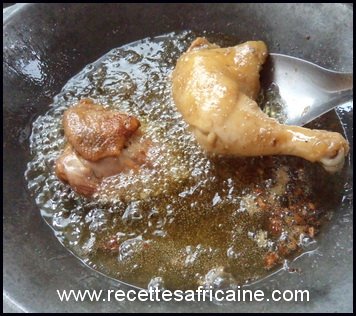 Le poulet est d’abord bouilli pendant quelques minutes avec les assaisonnements, puis frit.