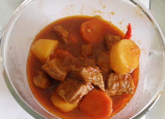 - Ajoutez ce mélange de tomate sur le bœuf dans la casserole et 2 tasses d’eau. Et laissez mijoter l’ensemble pendant 20 minutes ou jusqu’à ce que la viande absorbe presque tout le liquide.