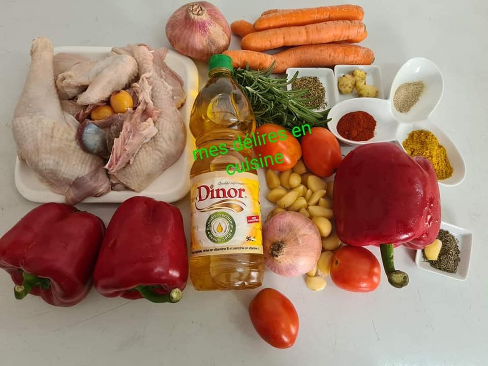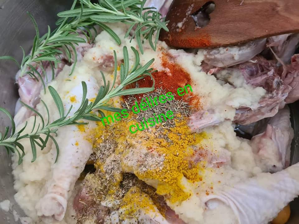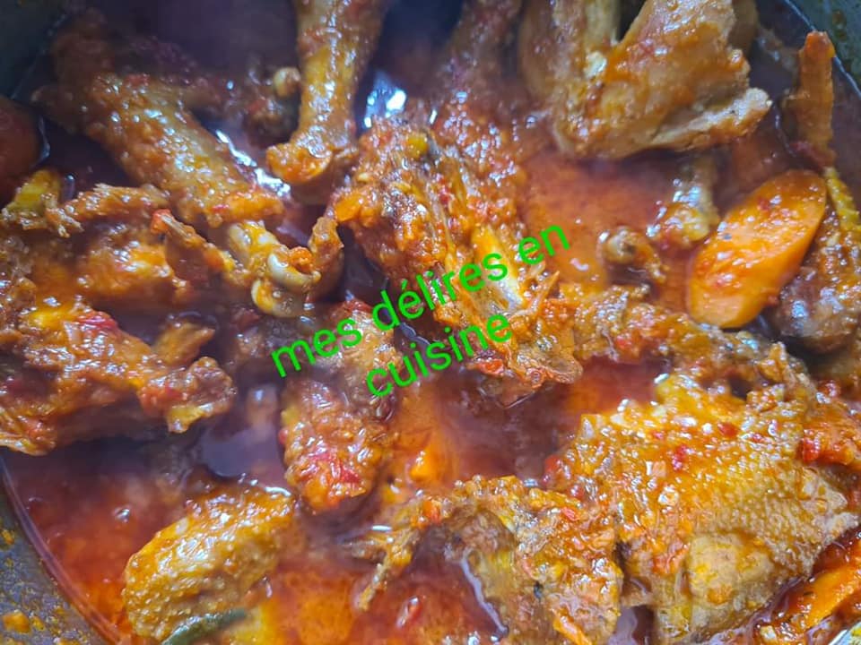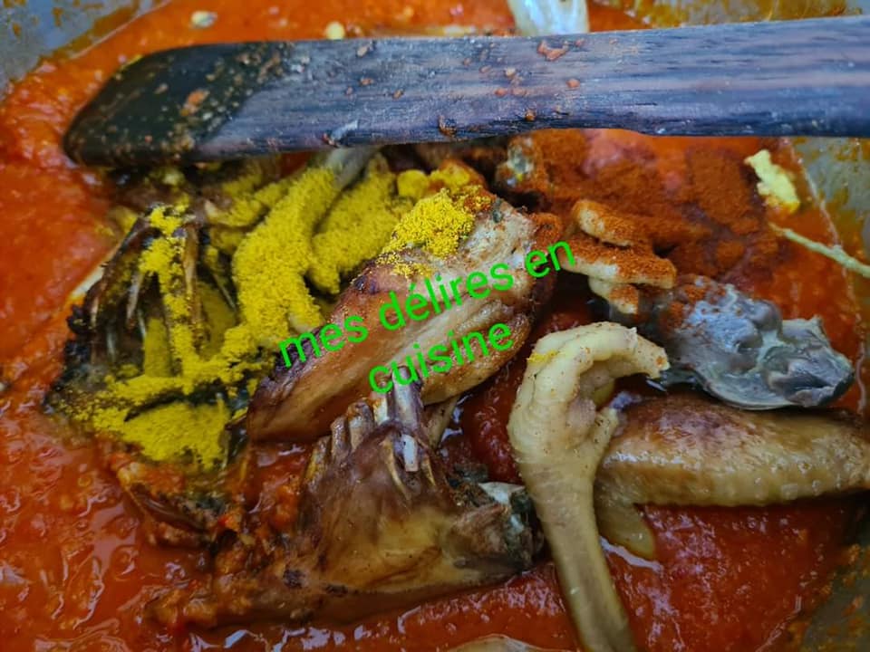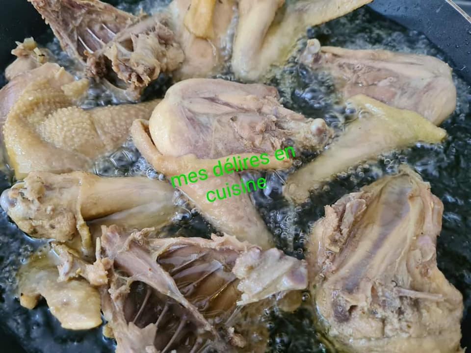 Poser au feu sans ajouter de l’eau et laisser cuire 15mn. Ajouter ensuite de l’eau à hauteur du poulet et laisser votre viande bien cuire.