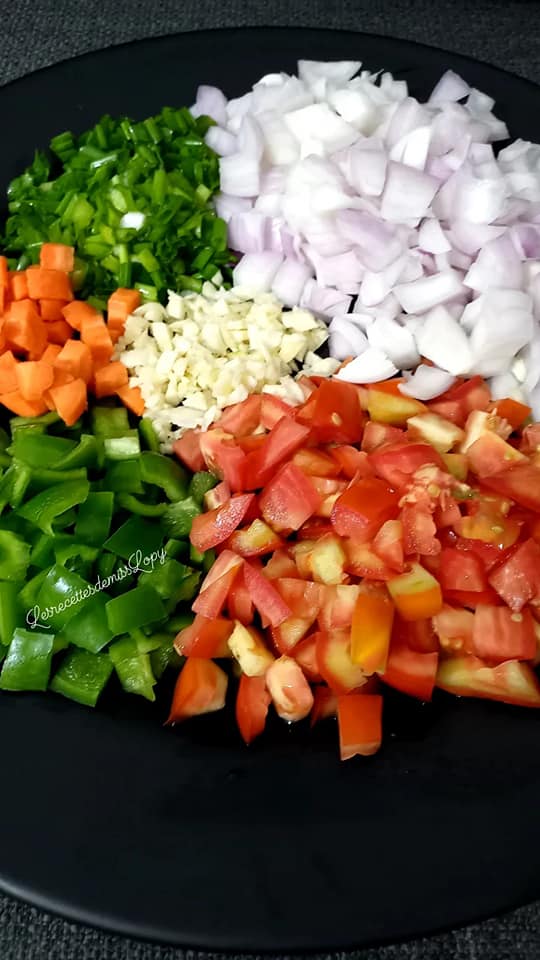 Tomates + ail + oignon + carotte + poivron vert + oignon vert