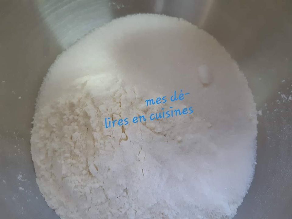 Mélanger la farine ,le sucre,le sucre vanillé et la levure chimique