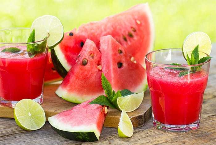 - Lorsque tous les ingrédients sont bien mélangés, versez le jus de pastèque dans un bocal et ajoutez un peu de glace pour qu’il soit frais.