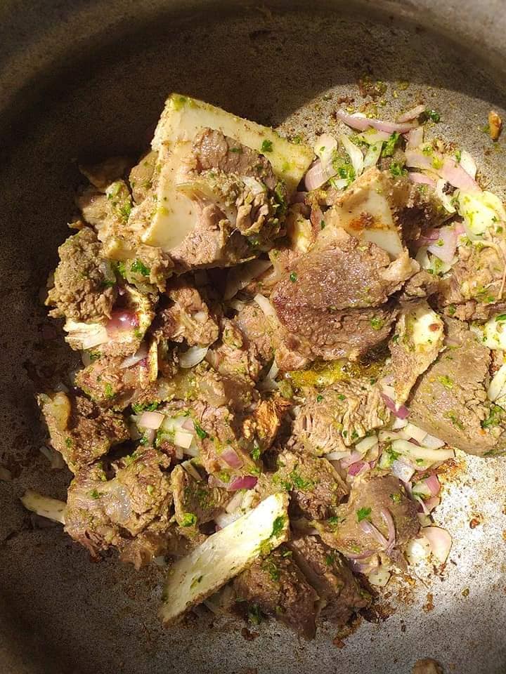 Ajouter l’huile, ails persil écraser et oignons. Faites revenir pendant 5 minutes.