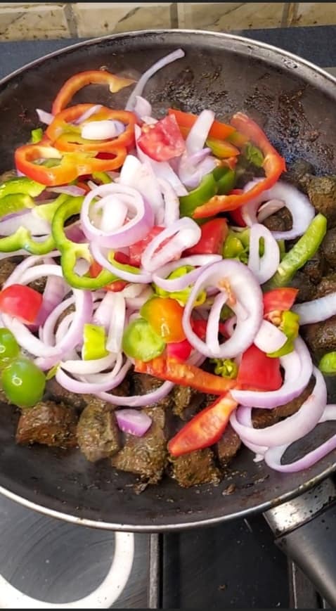 Découper grossièrement légumes ( oignons, tomate, poivron, piments….).