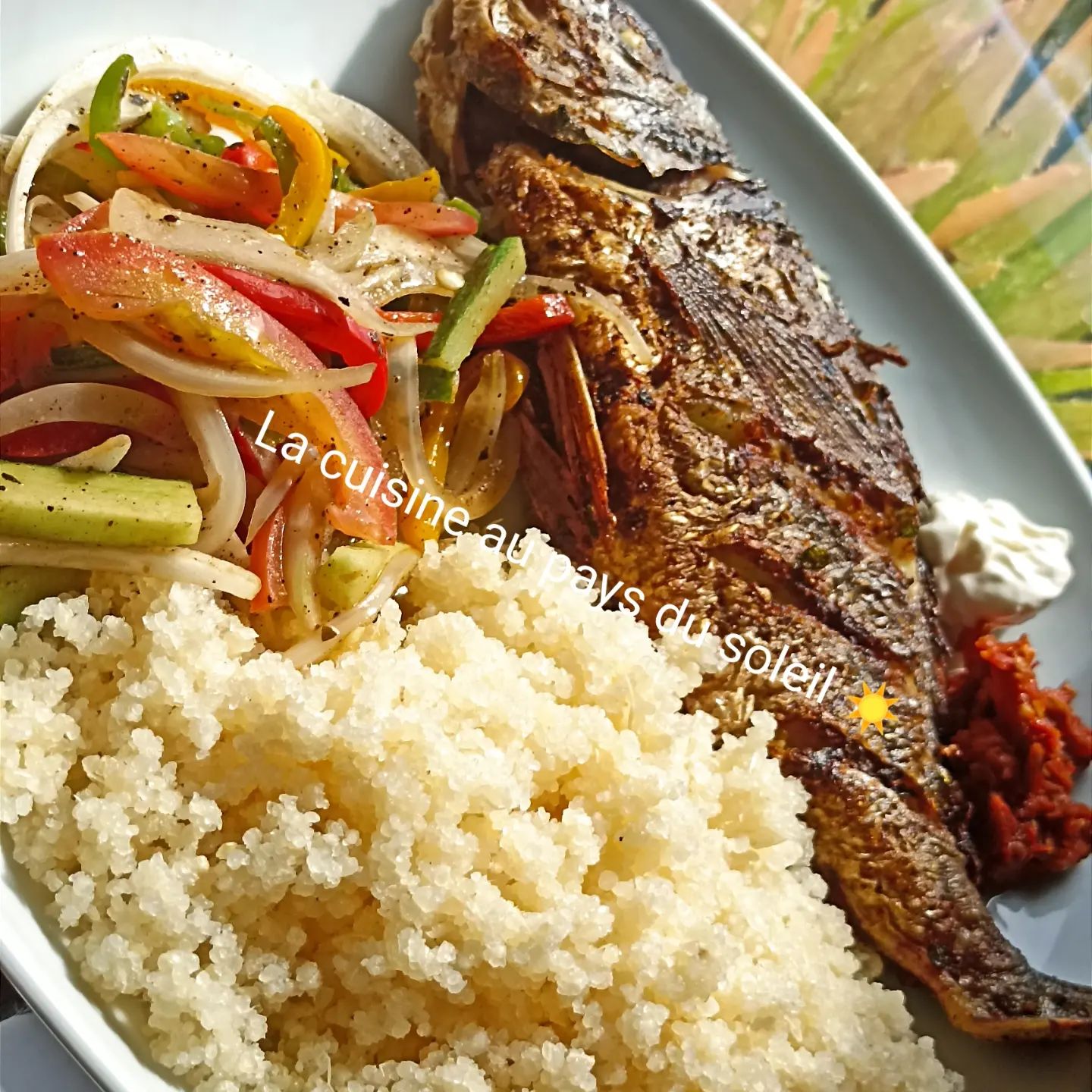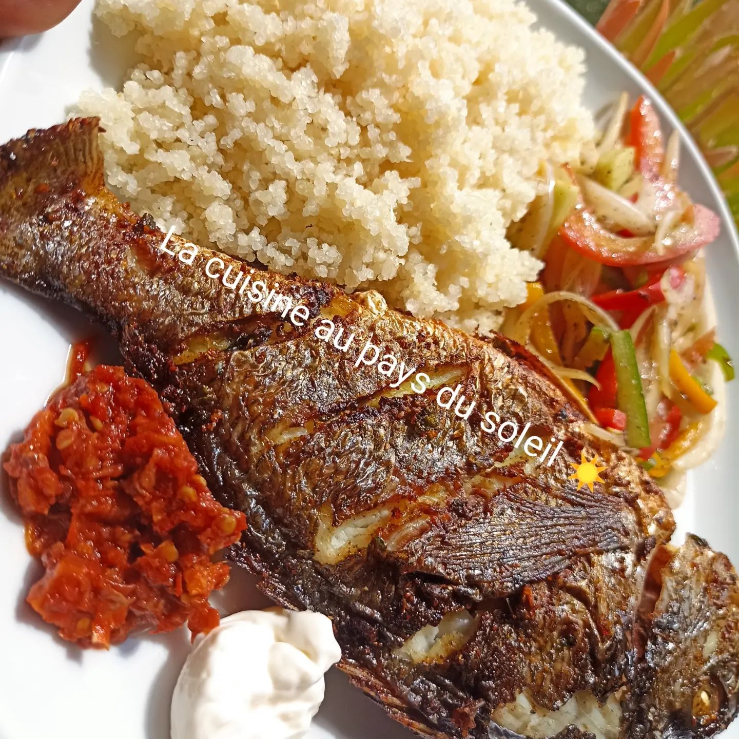 - Bien assaisonner le poisson avec le poivre noir ,4epices, épices spécial poisson, coriandre, le cube ,le sel et les conditionnements écrasés (aïl persil céleri gingembre)