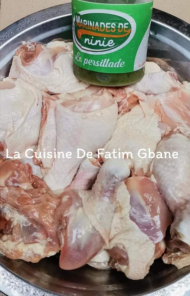 - Assaisonner les morceaux de poulet avec notre marinade “la persillade”, la moutarde, du sel et un bouillon culinaire si vous en consommez.