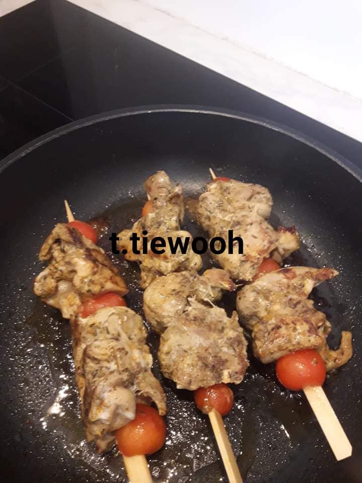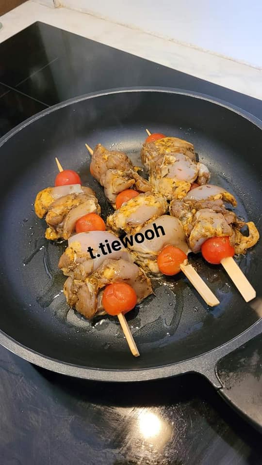 - Après enfiler les sur vos pics (on peut alterner avec poivron oignon) ici juste tomate cerise.