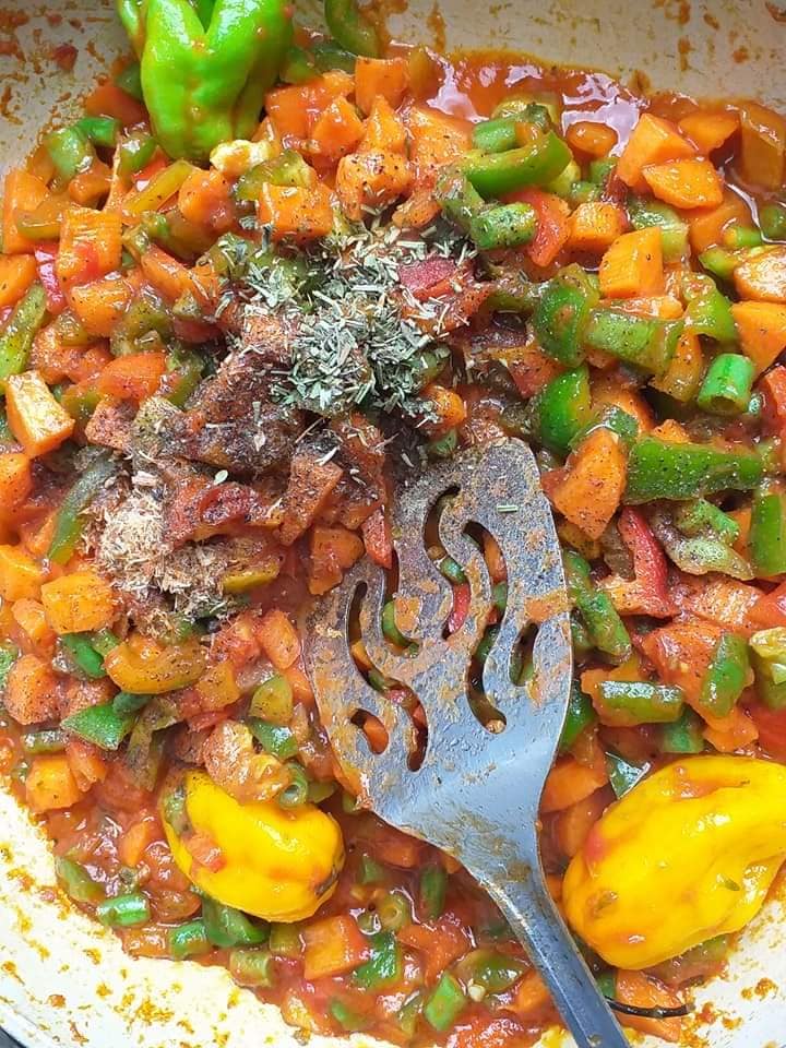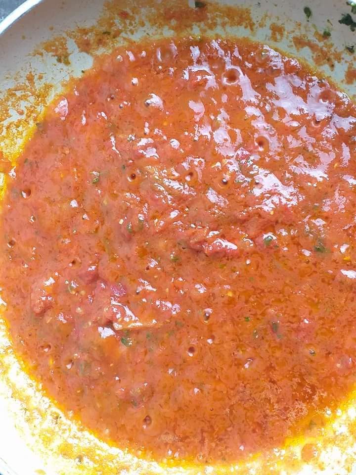 Y ajouter les épices Nora, le sel et ajouter environ 200ml d’eau et laisser mijoter pendant une dizaine de minutes.