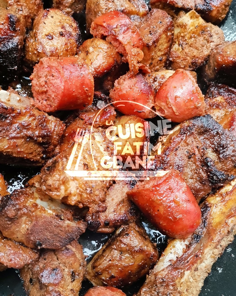 - Assaisonner les morceaux de viande et saucisses avec l’assaisonnement épice volailles & viandes blanches , de la moutarde, du sel et un bouillon culinaire si vous en consommez