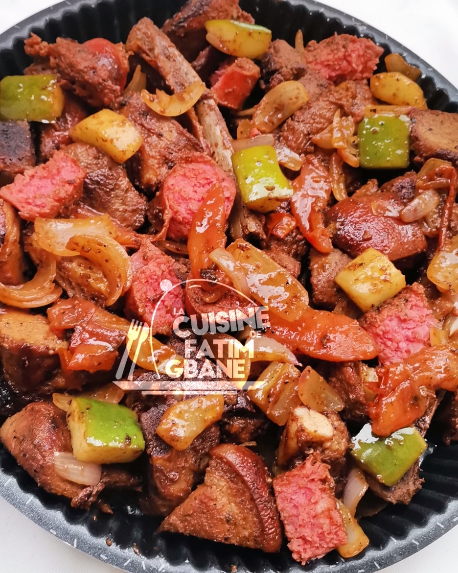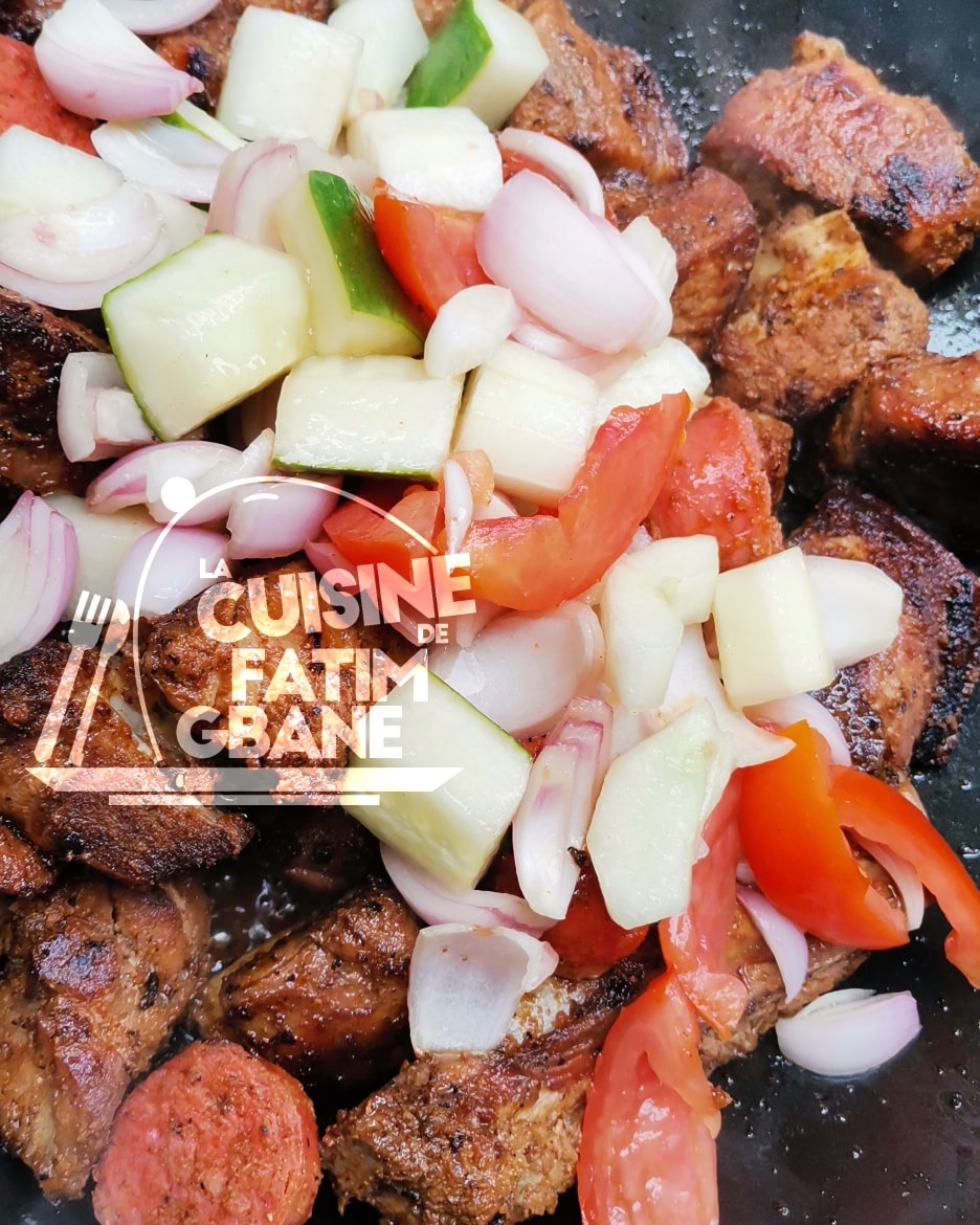- En fin de cuisson rajouter du vinaigre et les légumes découpés (concombre, oignons et tomate)