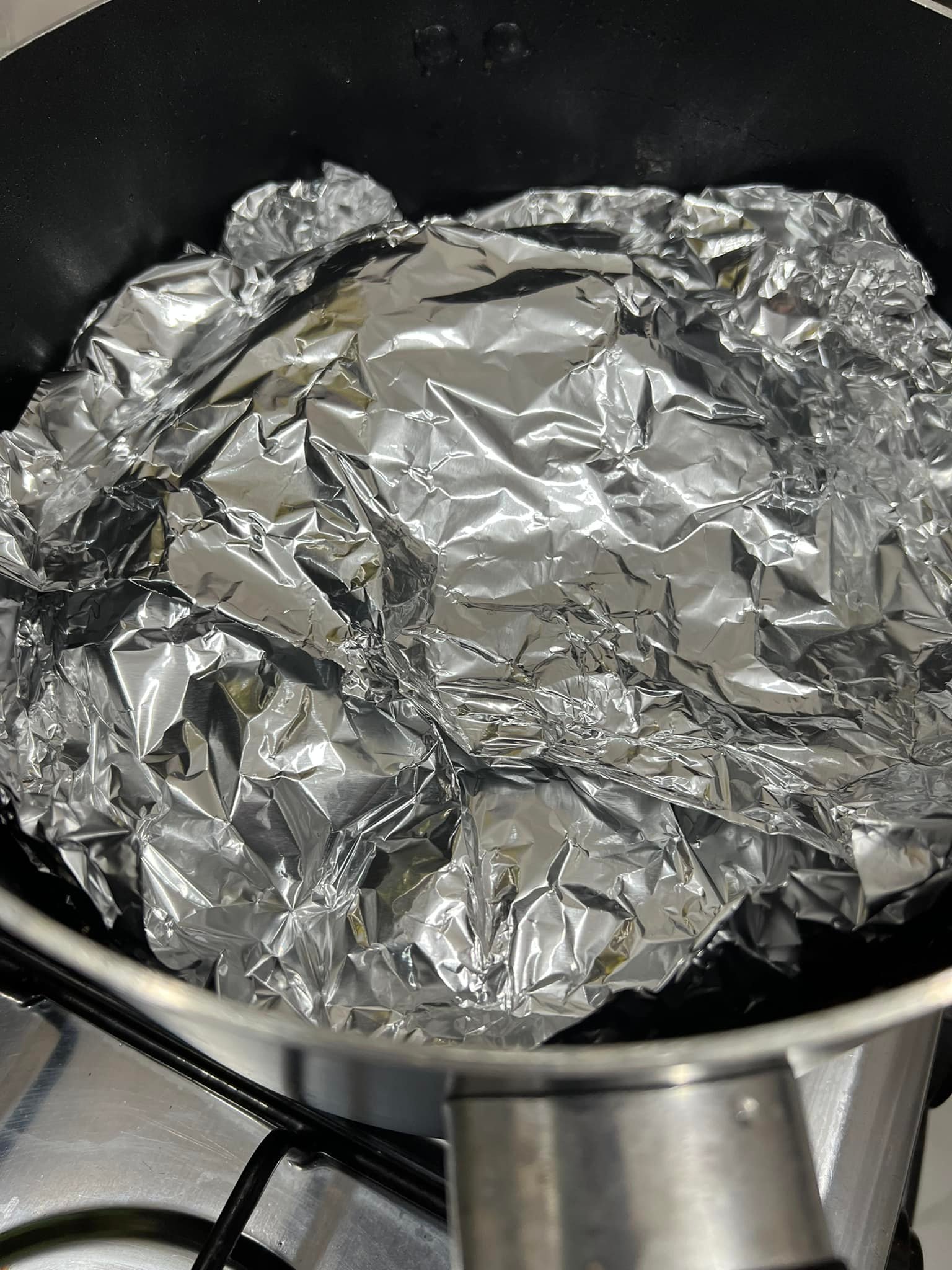 - À défaut d’avoir les feuilles de bananier, j’ai utilisé du papier alu pour recouvrir ma préparation.