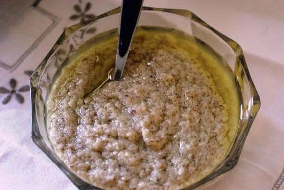 - Écrasez tous les condiments et les diviser en deux portion (une pour mariner le poisson et l’autre pour servir de sauce).