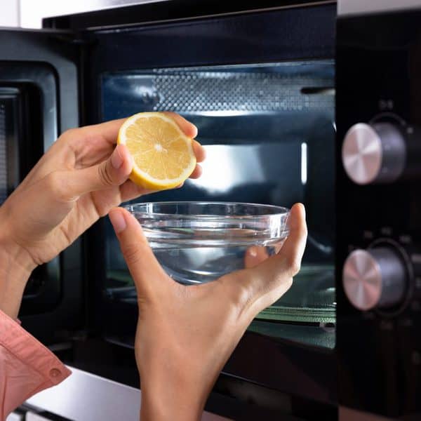 - Pour les odeurs légères (comme les aliments épicés avec une forte odeur), aérez le micro-ondes ou le four en laissant la porte ouverte ou mettez un bol de bicarbonate de soude à l’intérieur avec la porte fermée pour absorber les odeurs, et pour les odeurs fortes (comme le pop-corn brûlé ) nettoyez les restes et appliquez un gel absorbant les odeurs à l’intérieur.