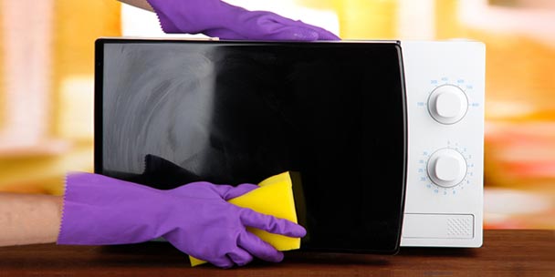 - pour éliminer les déversements cuits du sol ou du plateau tournant du micro-ondes, faites une pâte avec le bicarbonate et un peu d’eau