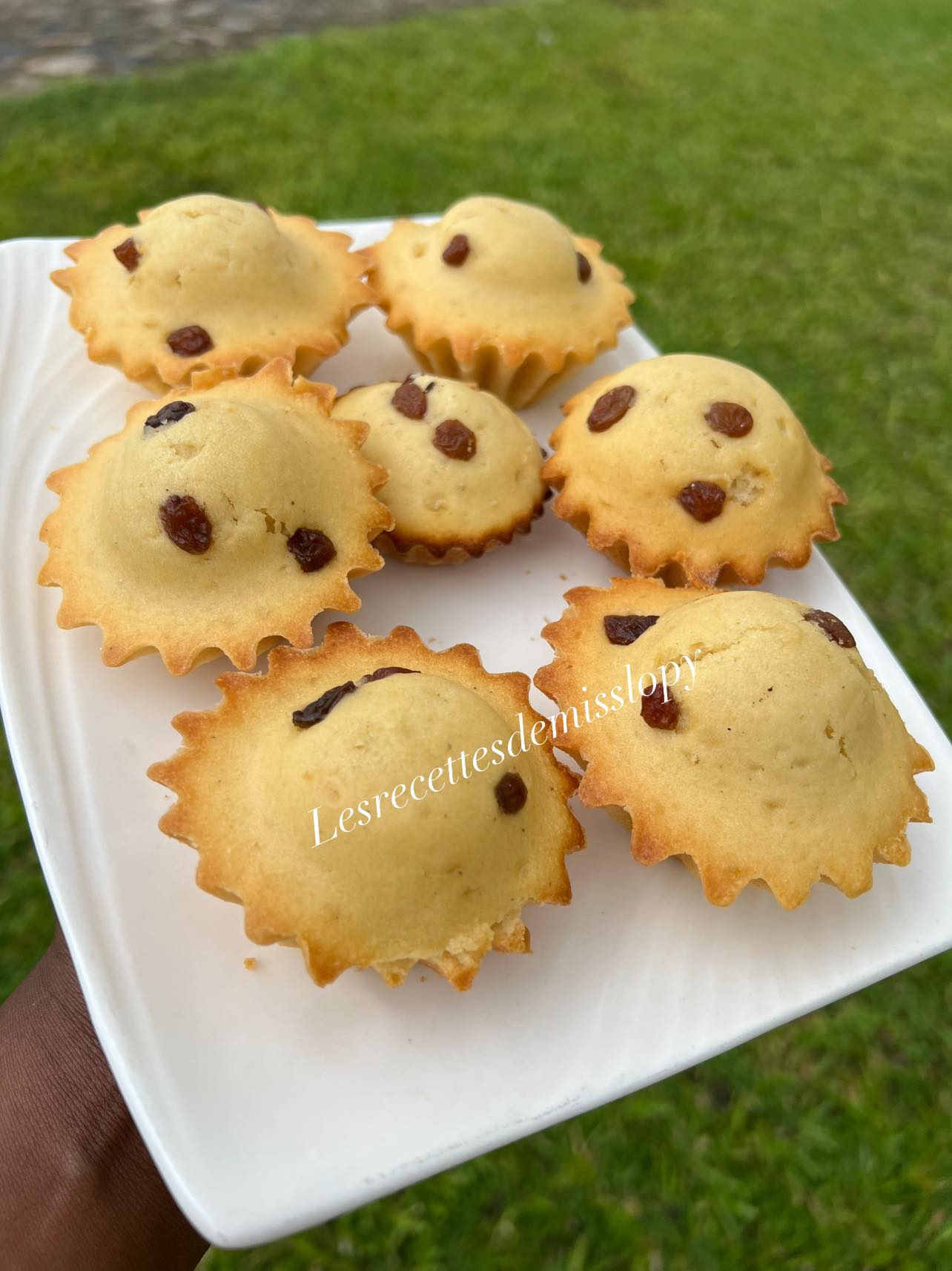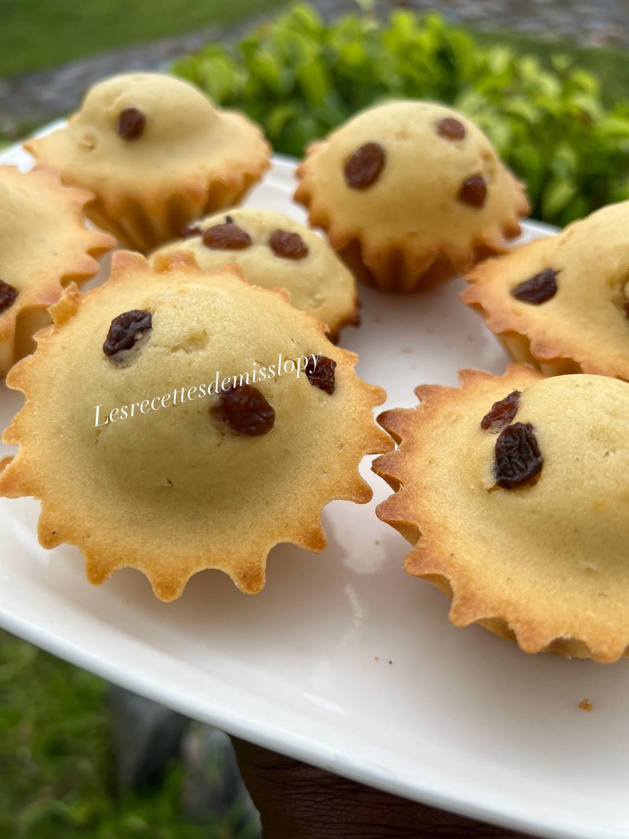 - Beurrer ensuite fariner des moules de votre choix puis remplissez les au 3/4 d’appareil à cake et terminez avec les raisins secs au dessus.
