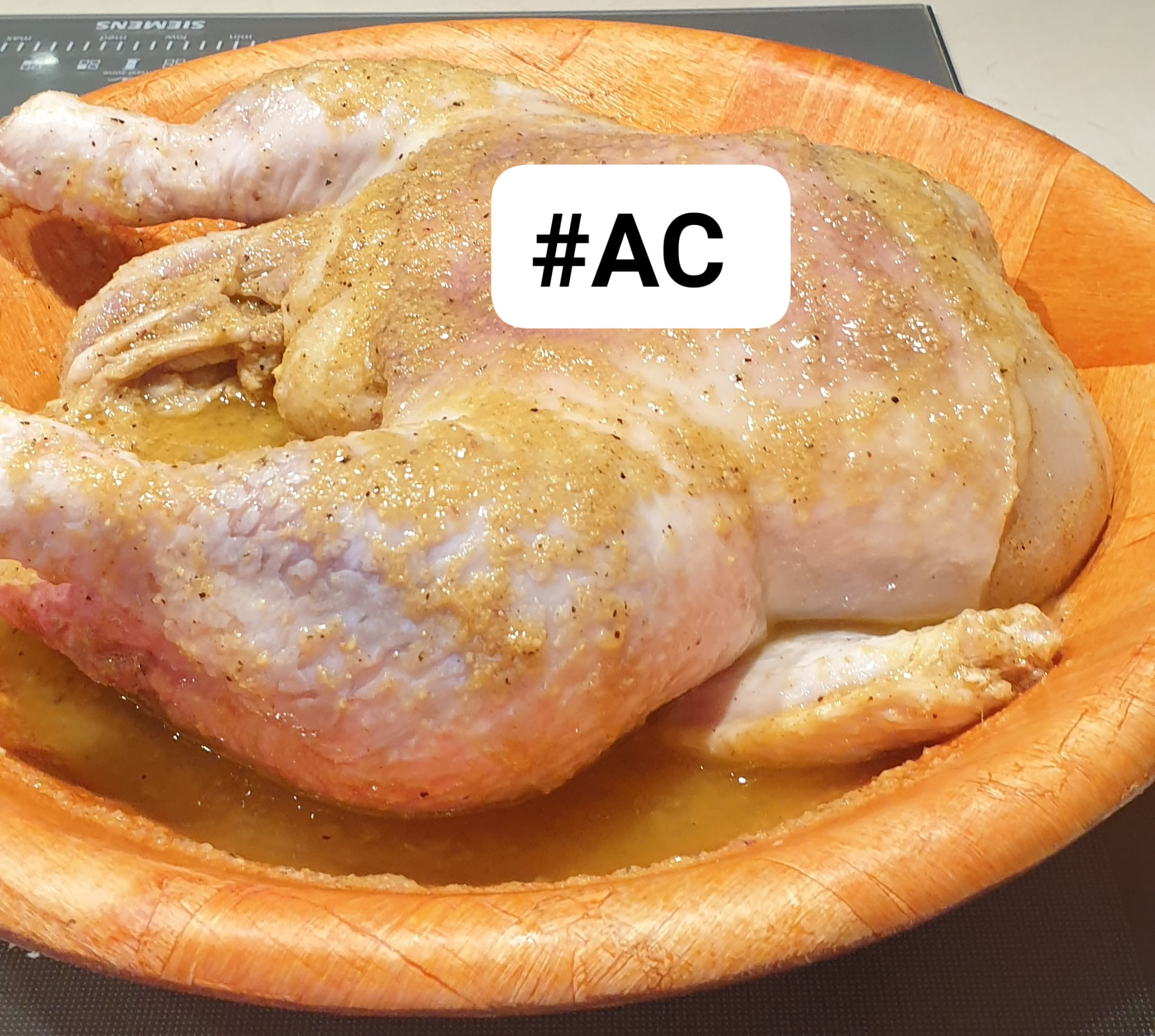 Après avoir nettoyer la poule, mariner avec du poivre noir et blanc , du sel, cube ( facultatif) et la Mixuture généreusement, ajouter 3 cuillères à soupe d’huile.