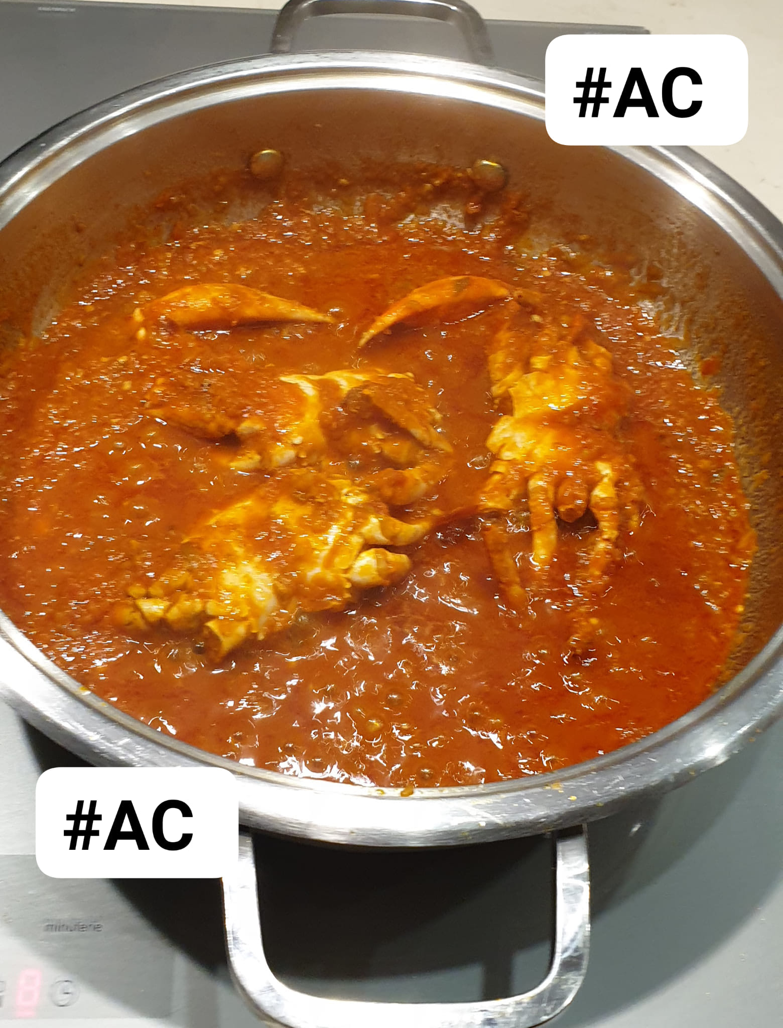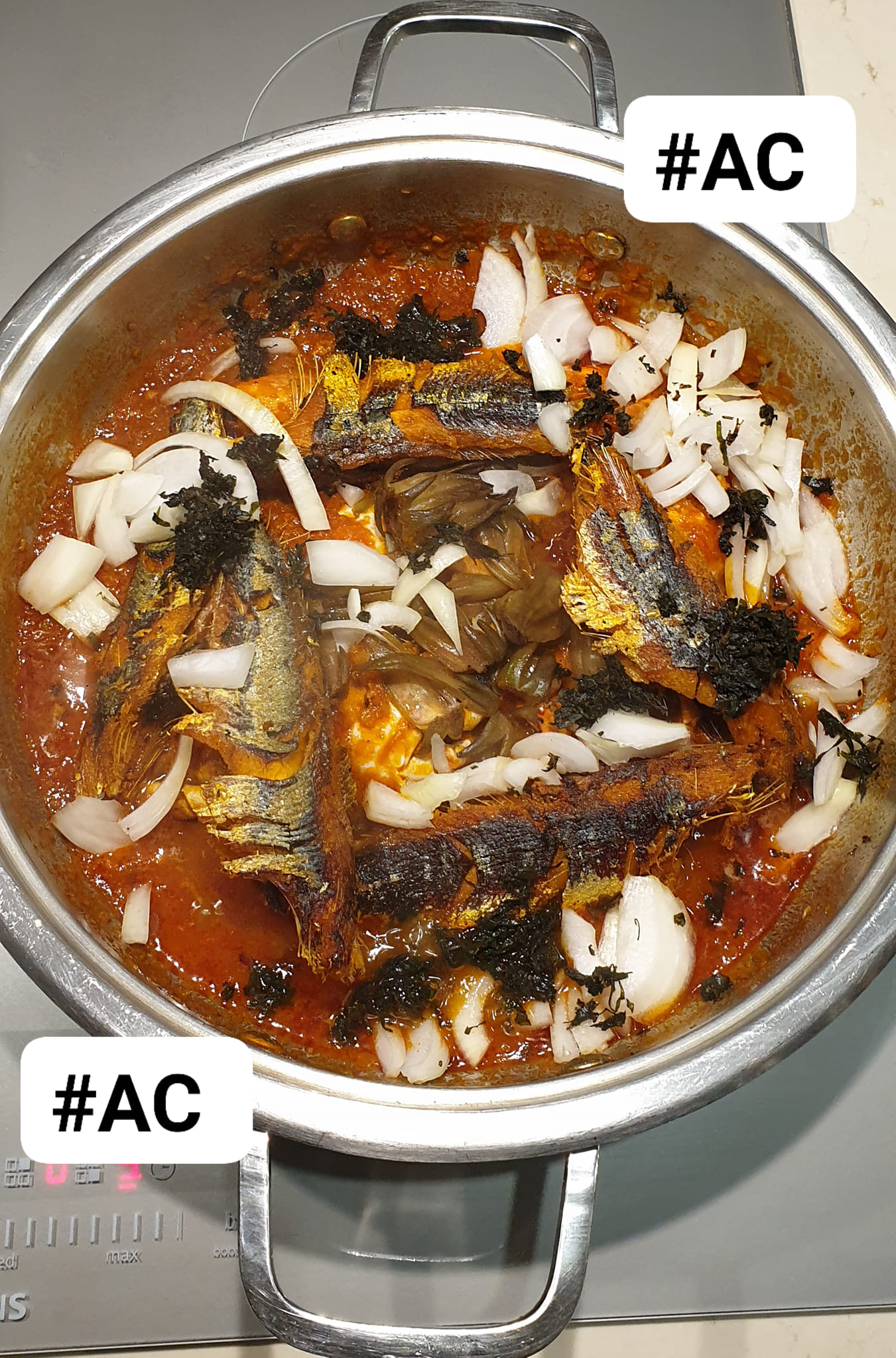 Ajouter la mixture de (oignon blanc, oignon vert, piment, tomate fraîche) rajouter la tomate concentrée. Ajouter un peu d’eau