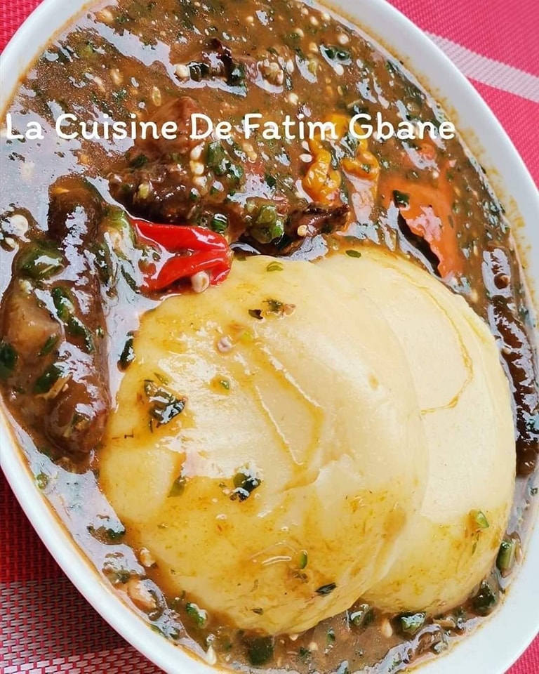 - Quand elle est dissoute, ajouter le gombo ou les feuilles de kplala découpés