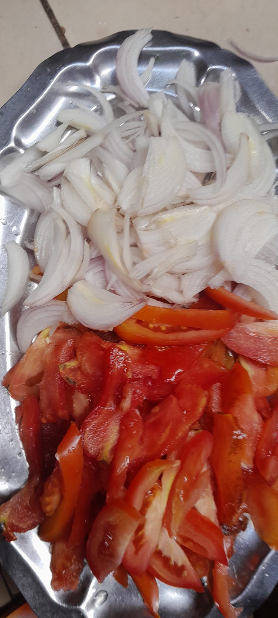 - Poser la marmite ajouter de l’huile laisser chauffer légèrement ajouter tomate et oignons découper et sel puis les légumes .