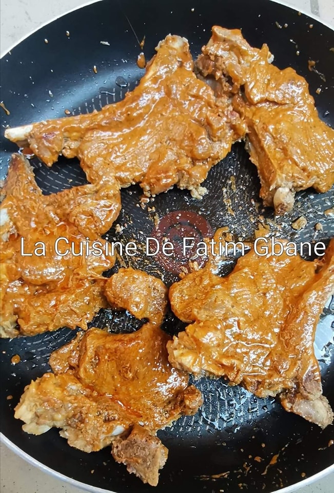 - Assaisonner les côtes de veau avec un mélange de moutarde, spécial choukouya, d’huile, de sel et un bouillon culinaire si vous en consommez