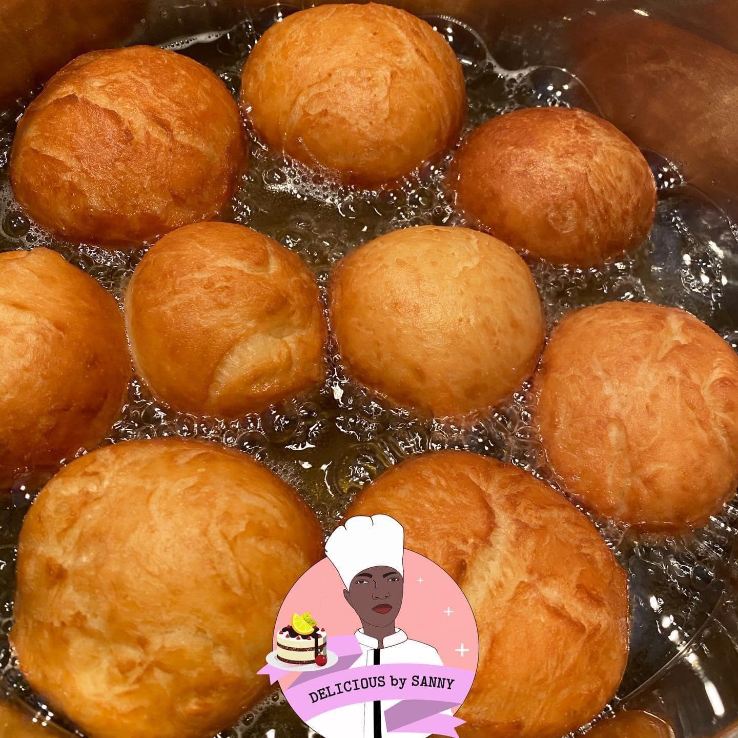 - Dans une casserole préchauffer l’huile. Elle ne doit pas être trop chaude sinon les gâteaux ne cuiront pas à l’intérieur. Y jeter quelques beignets et retourner à chaque fois afin que ça cuise bien à l’intérieur. Répéter ensuite l’opération pour tous les beignets.