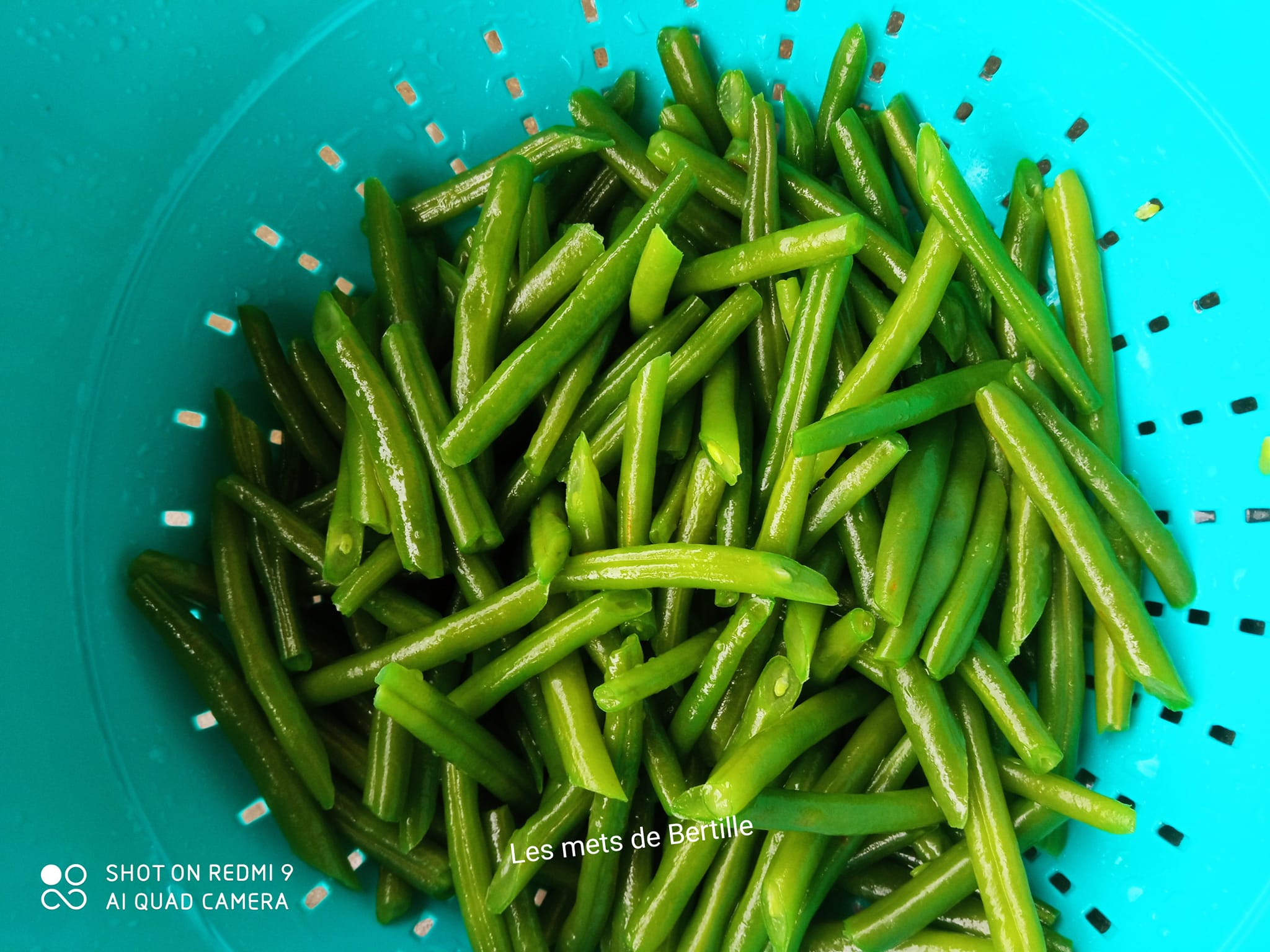 - Cuire le haricot vert à vapeur pendant une dizaine de minutes et réserver