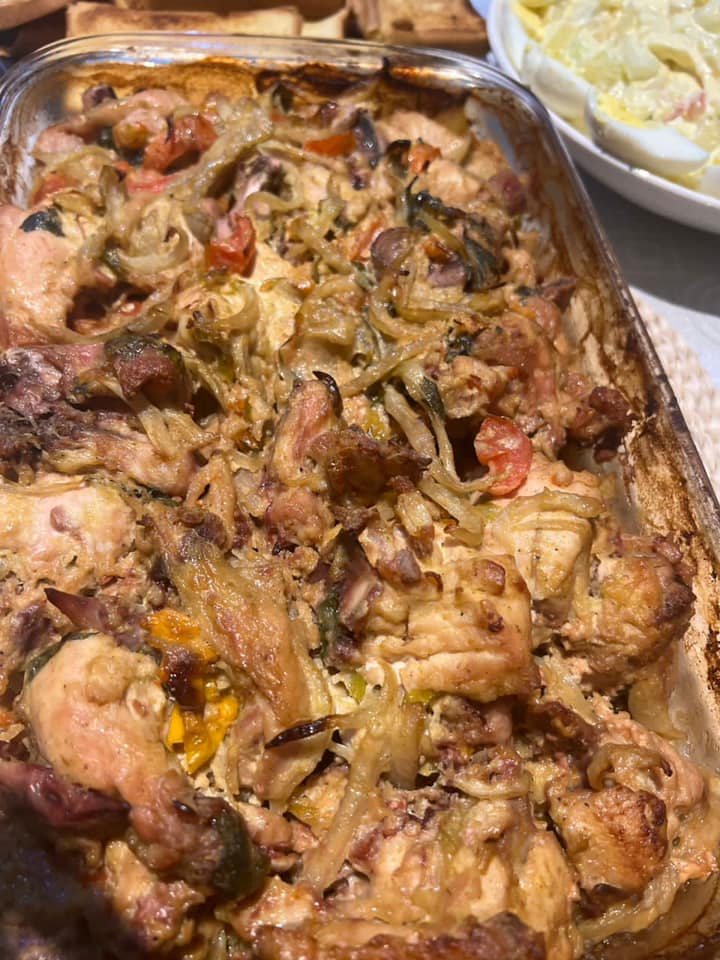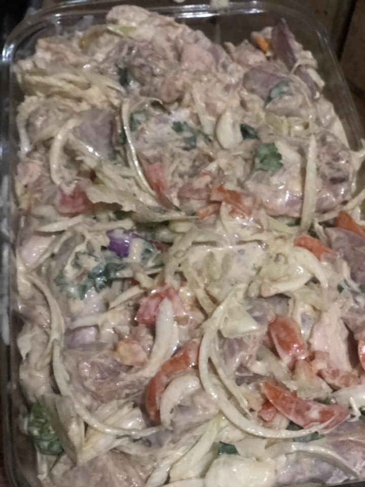 - Arroser le poulet du jus de citron , Mélange la mayonnaise, la moutarde et tous les autres ingrédients au poulet et recouvrir d un papier aluminium