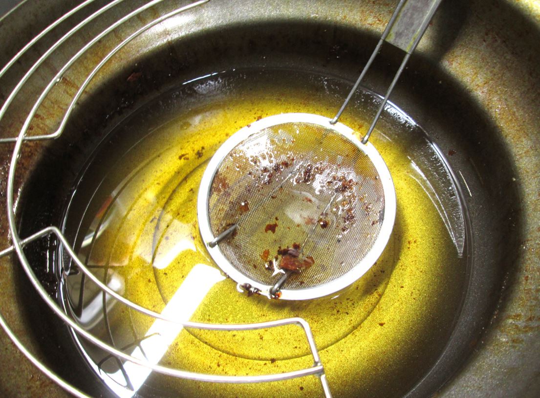 Avant de réutiliser une vieille huile de friture, rajouter un morceau de gingembre frais à l’huile chaude .