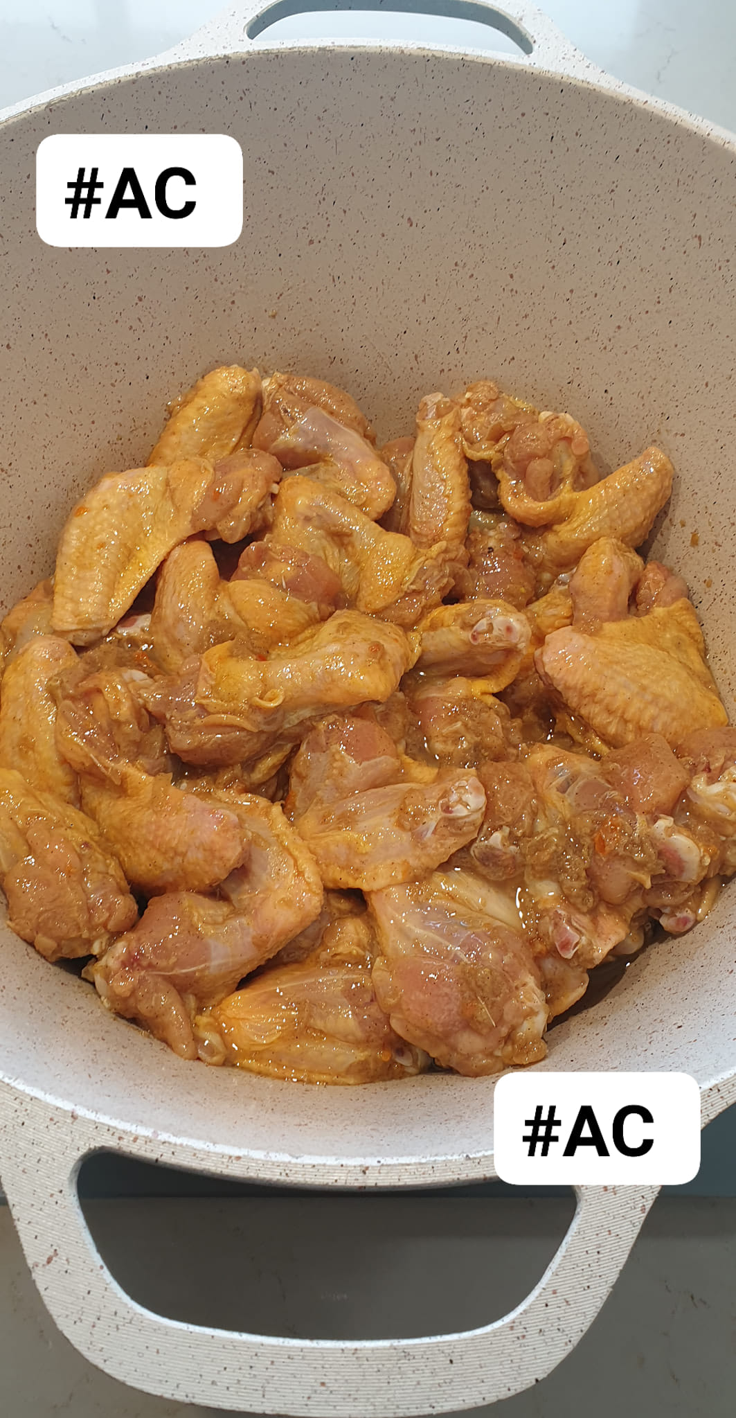 Mariner avec la mixture de beaucoups d’ail, un piment végétarien, un petit morceau de gingembre, poivre noir et blanc, sel , cube ( facultatif) deux cuillères à soupe d’huile .