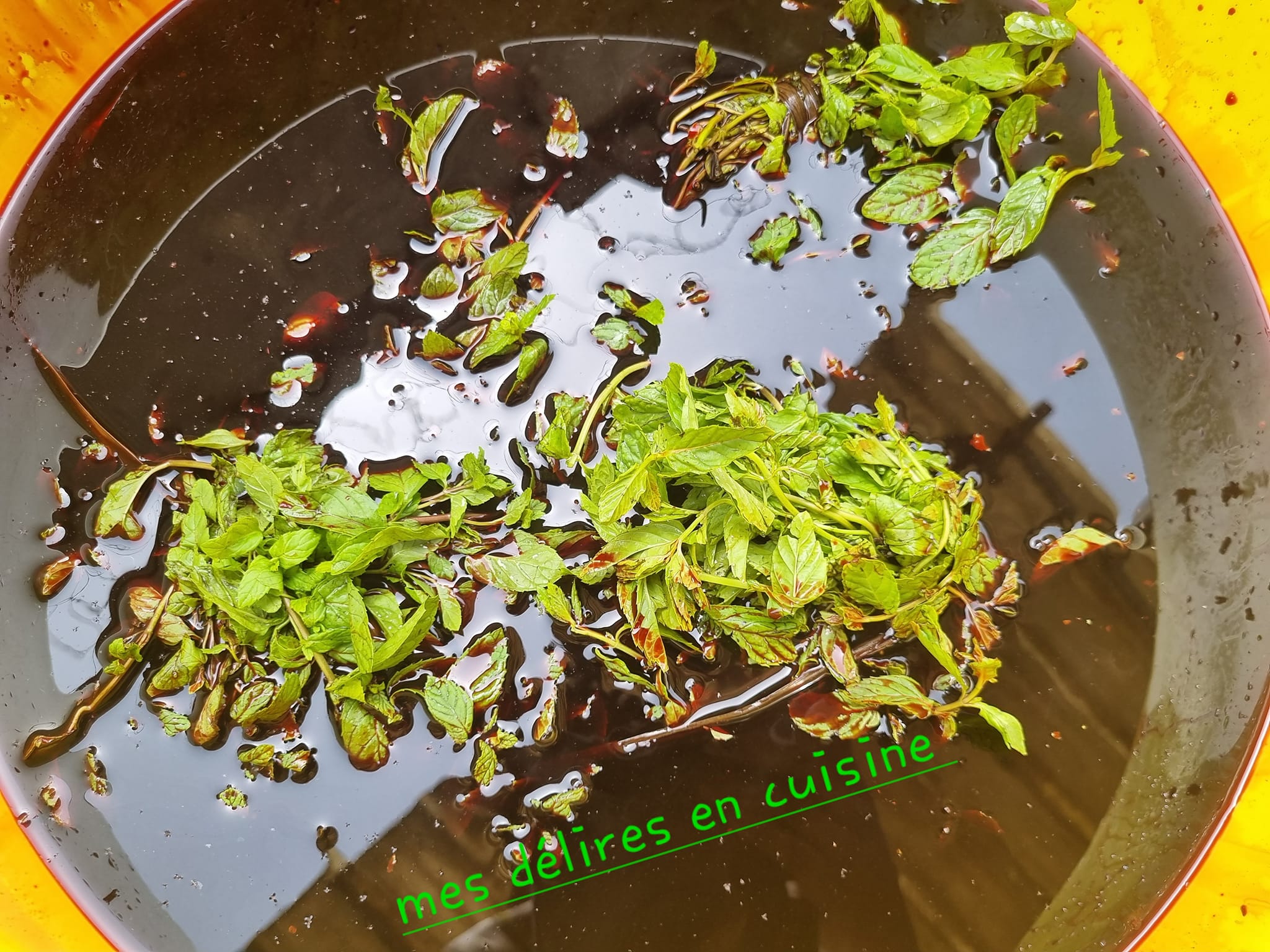 Une fois cuit,retirer du feu et y ajouter les feuilles de menthe