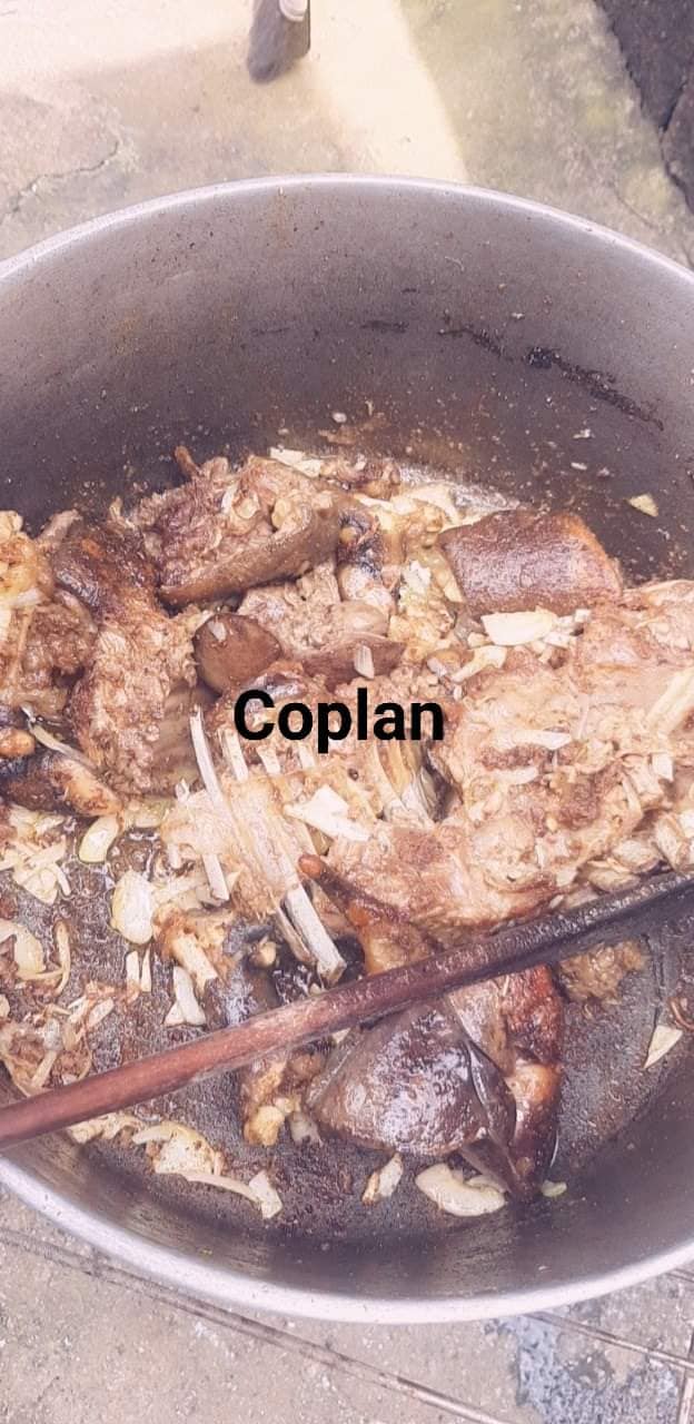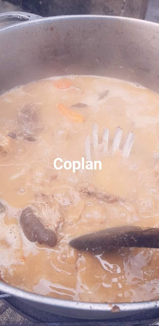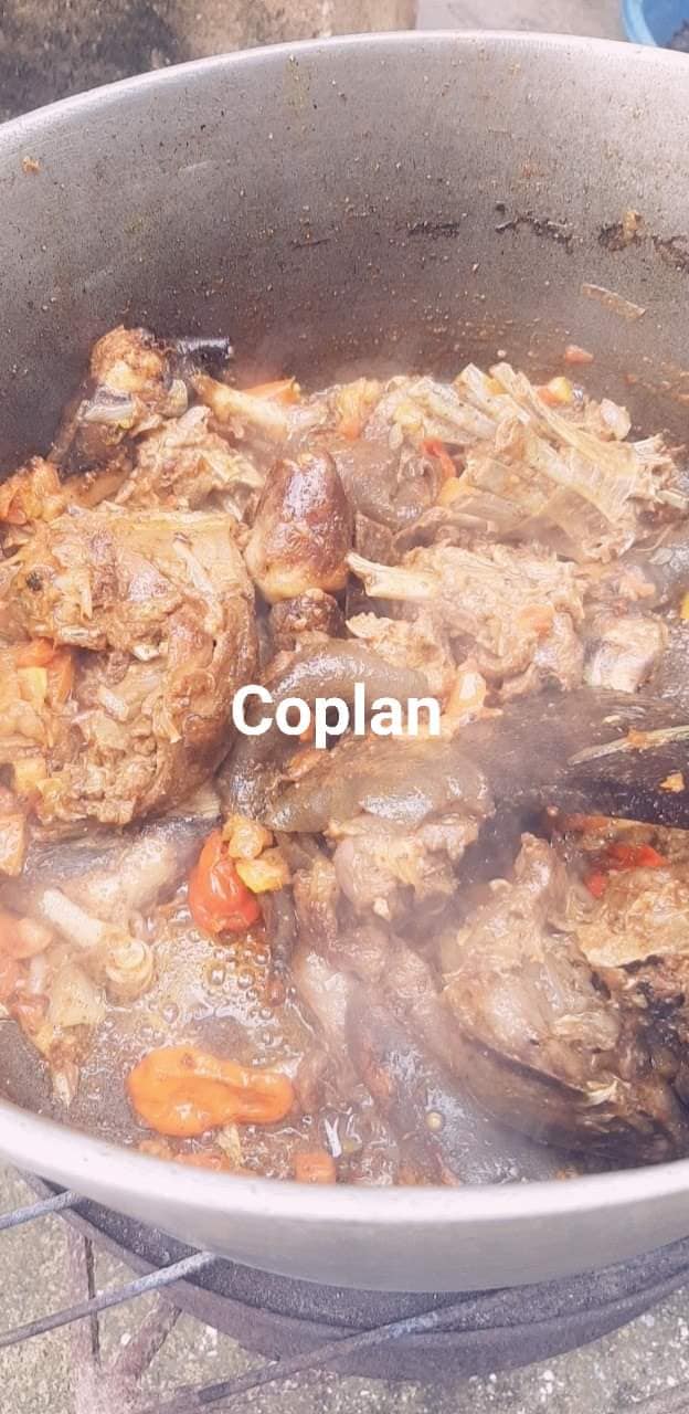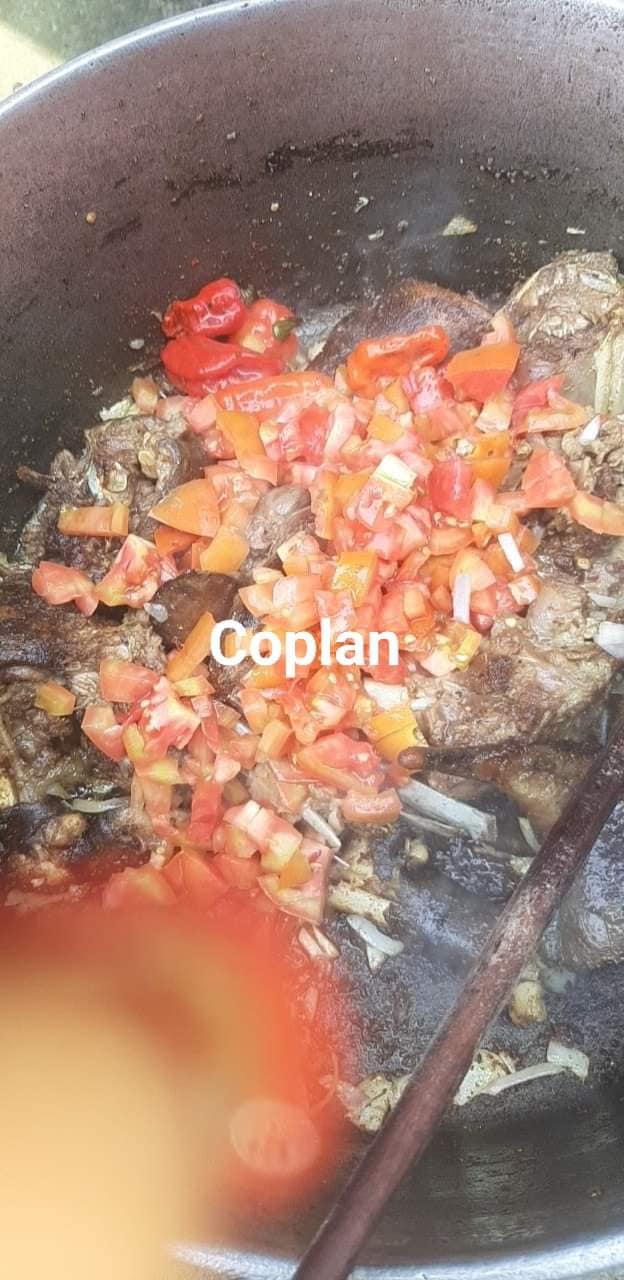 - Laver la chèvre découpée et la bouillir dans une bonne quantité d’eau avec du sel du poivre noir le njanssan le pebe les rondelles le tout écrasé et les plantes aromatiques pendant 1h au plus selon la cuisson voulue pour la dent
