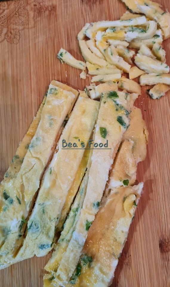 - Battre les œufs avec du sel, du persil frire avec 1CàS.