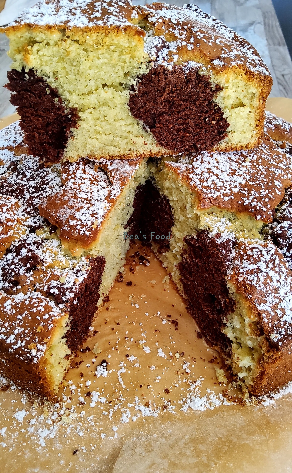 - Prélevez 6 cuillères à soupe du mélange à gâteau dans un bol séparé. Ajouter 2 cuillères à soupe de cacao en poudre et 1 cuillère à soupe de lait frais. Bien mélanger.