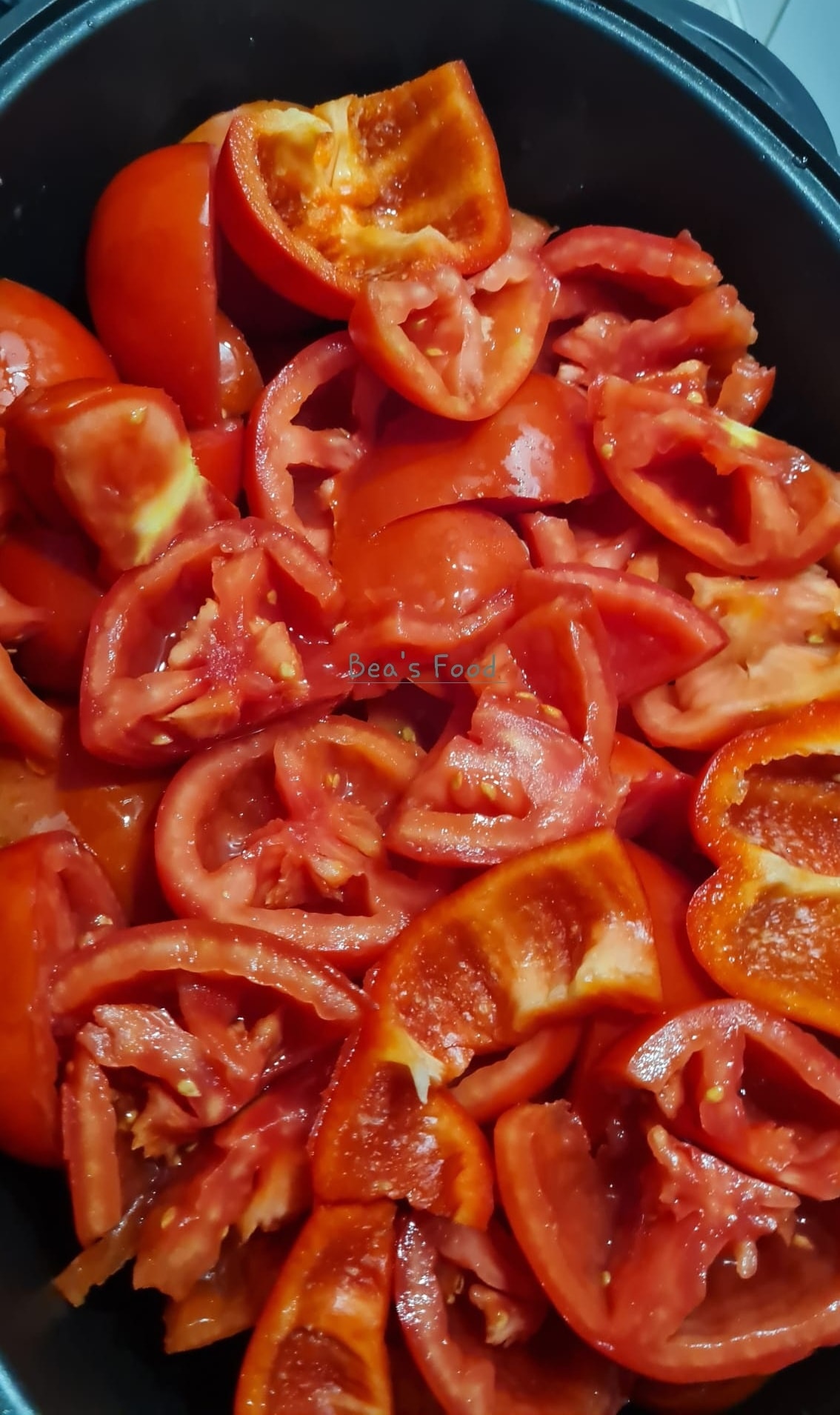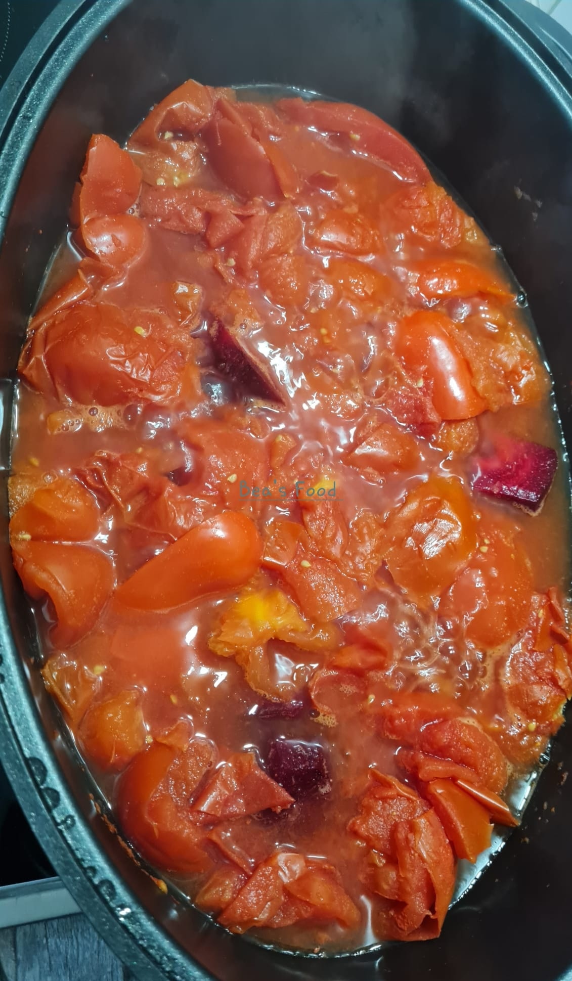 - Faire bouillir environ 10min les tomates et poivron découpées.