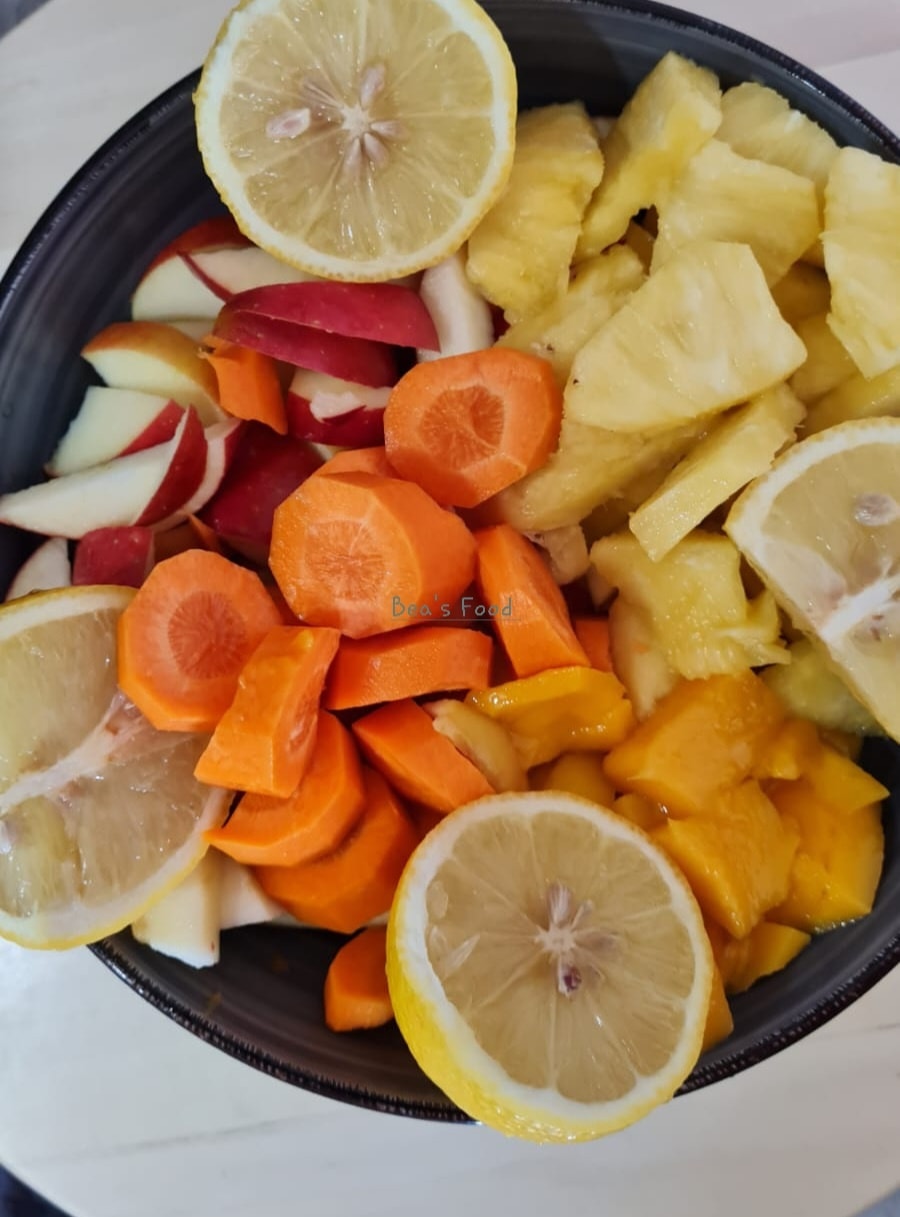 Rafraîchissez-vous avec un jus multivitamines succulent, alliant la douceur de la mangue et l'acidité de l'ananas. Ce mélange tropical est non seulement délicieux, mais aussi riche en vitamines et minéraux. Parfait pour commencer la journée ou comme en-cas revitalisant !