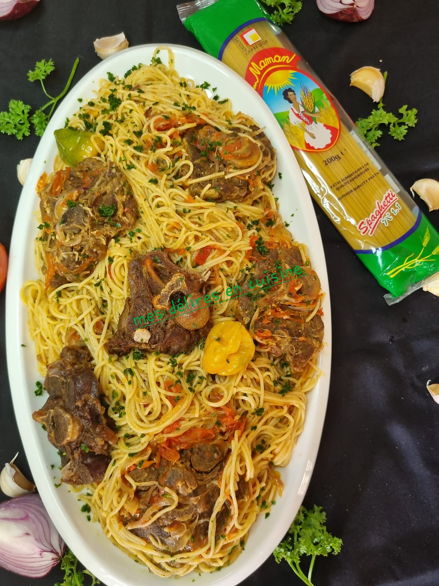 Mettre de l’eau au feu. Saler et ajouter 4 c à s d’huile .Mettre les spaghetti dans l’eau bouillante et laisser cuire .Une fois cuite,retirer du feu et verser dans une passoire.