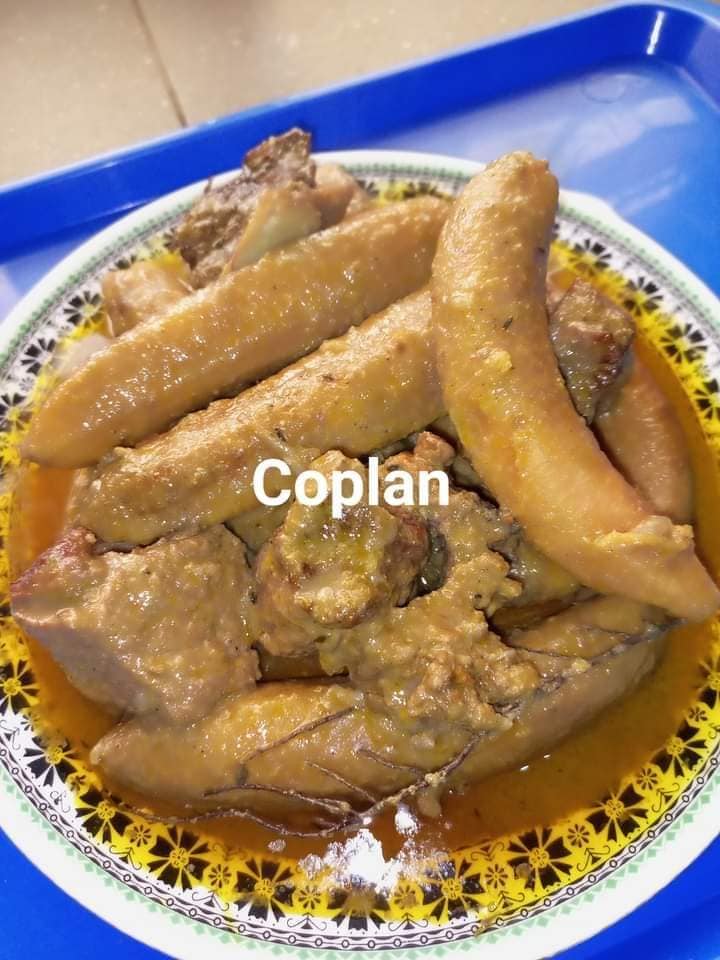 - Puis rajouter la viande réservée. Verser la mixture des condiments que vous avez écrasée au préalable njanssan ail oignon poivre noir et blanc pebe rondelles gingembre clou de girofle herbes de Provence condiment verts…de l’eau Et laisser poursuivre la cuisson afin que l’huile pénètre bien dans le plantain…