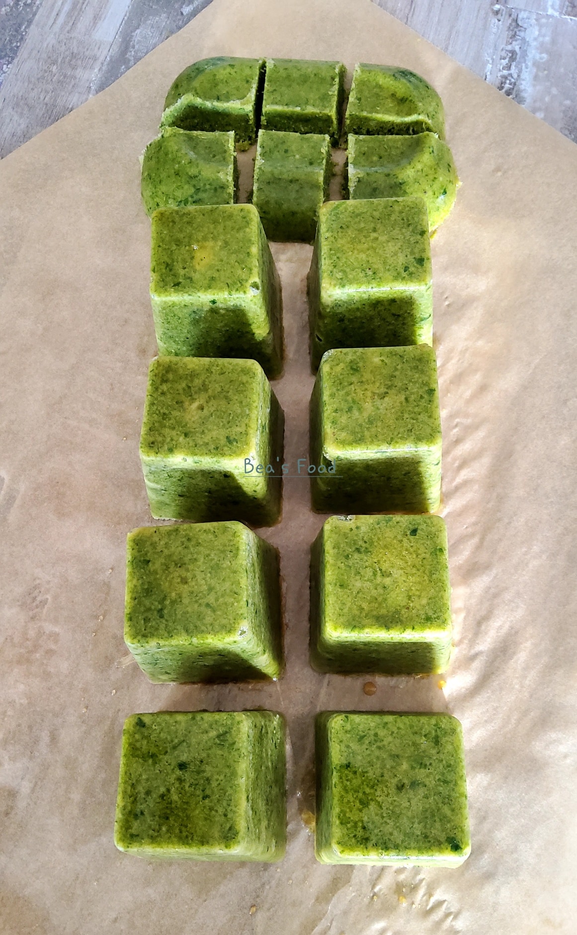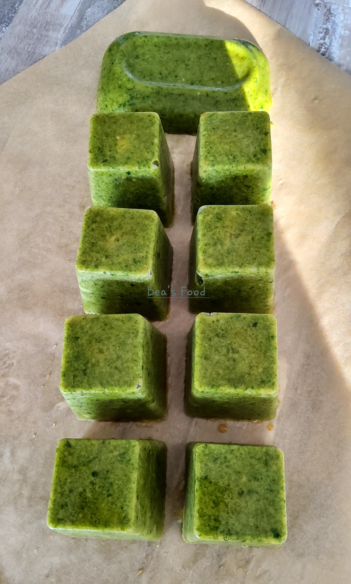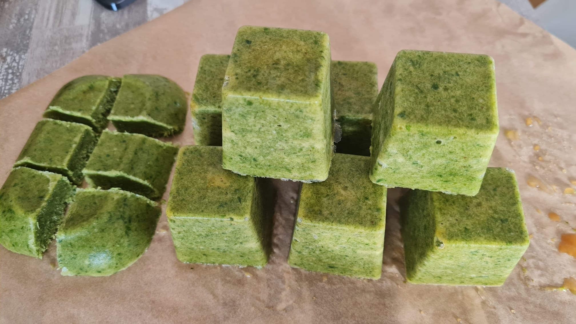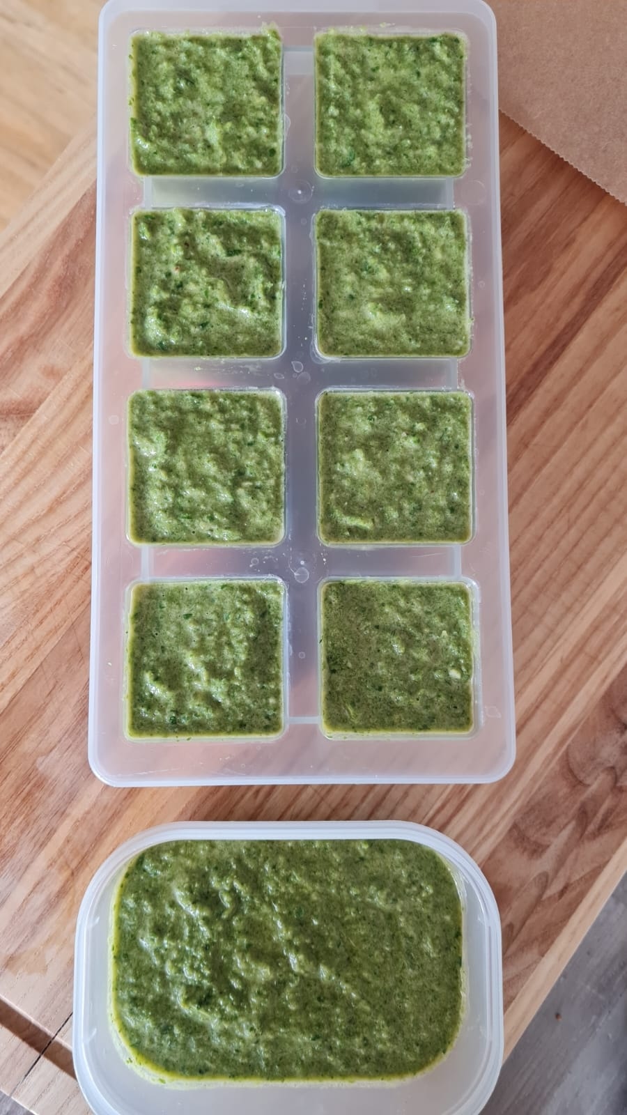 - Puis, mettre la pâte obtenue dans un bac à glaçons ou un autre récipient pour congeler.