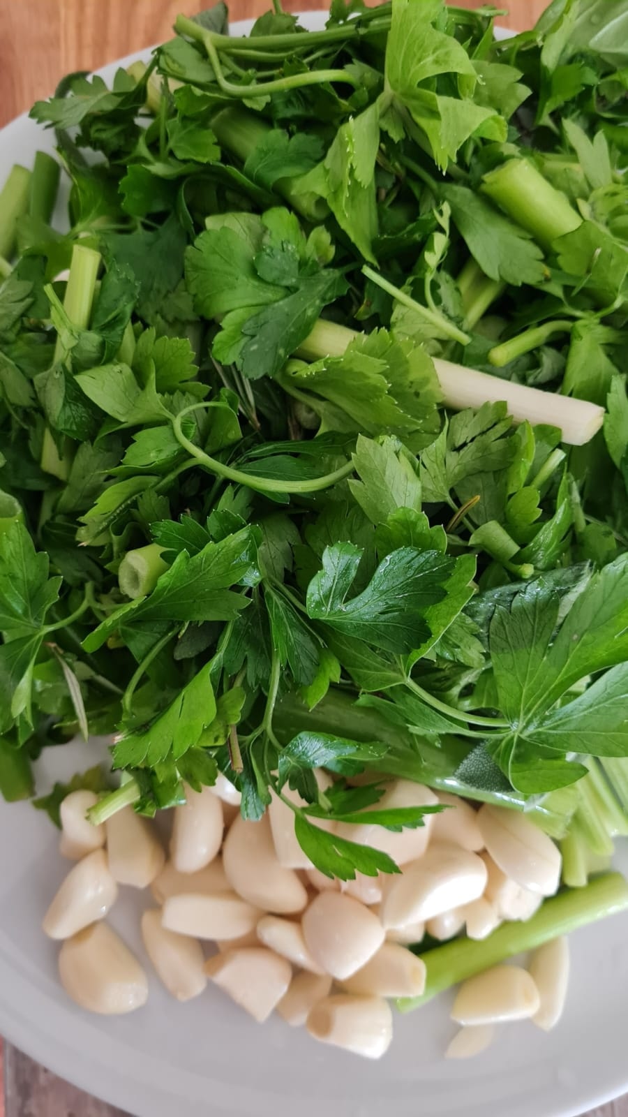 - Mixer ou écraser d’abord toutes les herbes aromatiques( pas obligé d’avoir toutes les herbes).