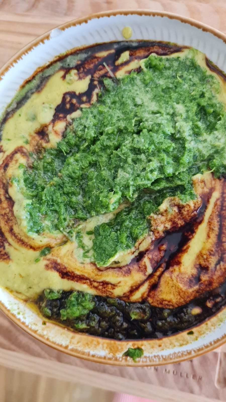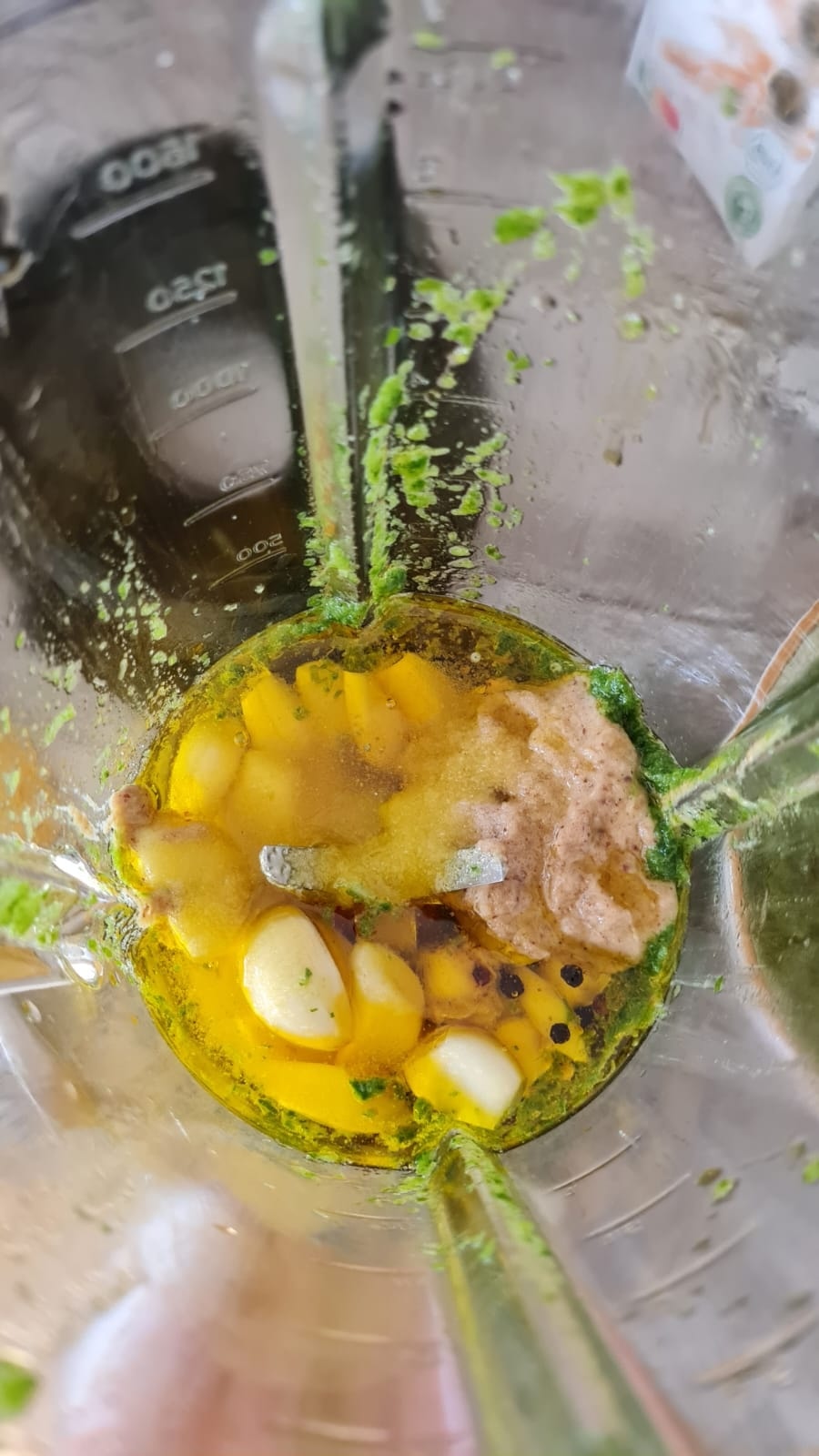 - Incorporer la pâte d’ail obtenue à la pâte verte.