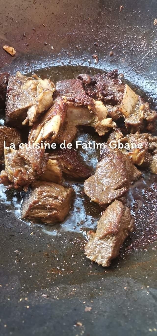 - Précuire les morceaux de viande assaisonnés puis réserver le bouillon