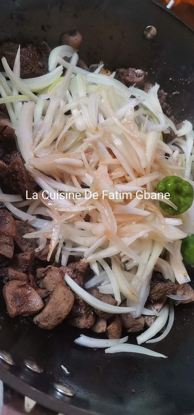 - Frire les morceaux de viande puis rajouter les morceaux de rognon précuits