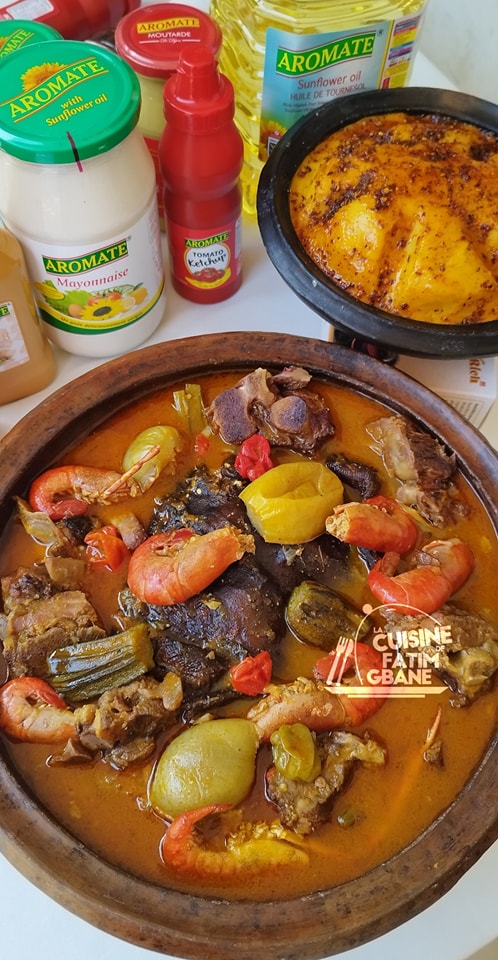 - Quand les légumes sont cuits les écraser (tomates ,oignons, et piment), ensuite rajouter la purée obtenue dans la sauce avec 2 cuillères à soupe de la saveur africaine avec les aubergines et gombo.